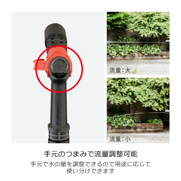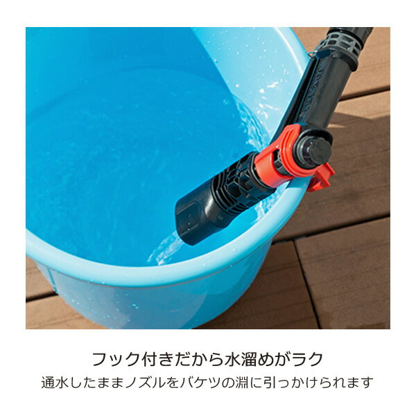 広範囲の洗浄に大活躍!勢い重視から範囲重視まで、様々なシチュエーションに対応できる散水ノズル。用途に合わせて!豊富な水形4種類ノズル先端を回してサイクロン・ジェット・フラット・整流の4種類に切り替え可能。洗車や掃除はもちろん、園芸にも使用できます。フック機能で水溜もラクラク通水したままノズルをバケツの縁に引っ掛けられます。節水つまみ付き手元のつまみ操作で水の流量が調節できます。通水・止水ラクラク切換え通水・止水の切換えは手元のレバーを握るだけ。ワンタッチでホースと接続ホースがワンタッチで着脱できるコネクターを付属。2年間保証付きお買い上げ日より2年間の保証付きで安心。適合ホースサイズ普通ホース(内径12〜15mm/外径21mmまで)に対応。ご注意井戸水で使用しないで下さい。サイズ(約)幅17.5×奥行6×高さ24.6cm重量(約)260g 材質原料樹脂/ABS 樹脂、ポリアセタール、ポリプロピレン、ポリエチレン、塩化ビニル樹脂 金属材料/ステンレス、アルミニウム ゴム材料/EPDM、NBR最大使用可能水圧0.7MPa適合ホース内径/12mm〜15mm 外径/21mmまで保証期間お買い上げ日より2年間品番QG559メーカータカギあわせて買いたい関連キーワード: パターン 流量 調整 汚れ落とし ジェット 掃除用 縦に 扇形 水圧 すすぎやすい 扇状 ジェット水流 ホイール清掃 止水 レバー ストップ 簡単 シャワーヘッド ホースリール 玄関 ベランダ 洗車用 ワンクリック 渦巻き状 うずまき状 フラット メーカー保証 2年保証 YouTube スパイラル 放水 トリガー 洗車に最適 ホース 接続 部品 オプションパーツ takagi 純正品 トルネード 洗車動画 洗車にお勧め 洗車向き おすすめ 人気 4975373183130
