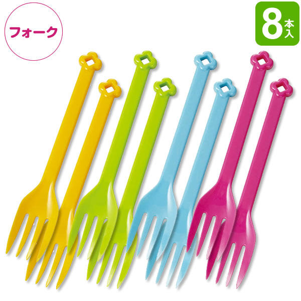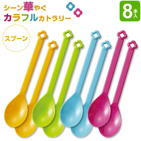 使い捨て スプーン フラワー フォーク/スプーン 8本入×まとめ買い4個セット | プラスチック カトラリー フォーク カラフル 行楽 弁当 アウトドア キャンプ 花見 パーティー メール便 1000円ポッキリ 送料無料