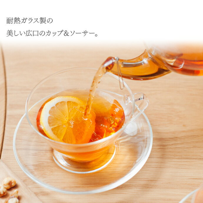 HARIO ハリオ 耐熱カップ&ソーサー・ワイド(ティーポットセット) | カップ ソーサ— 耐熱 ガラス ティーポット 透明 コーヒー 紅茶 ハーブティー 花茶 フルーツティー 電子レンジOK 食洗機対応
