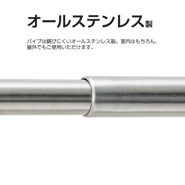シンプルを追求した物干ポール室内はもちろん、屋外でも使えるスタイリッシュな洗濯物干し竿。オールステンレス製パイプは錆びにくいオールステンレス。屋外でご使用いただけます。おしゃれ物干し竿の常識を覆すおしゃれなデザインを追求。先端キャップは極限までシンプルに。伸縮部は樹脂部品を使わず、エッジを磨き上げました。直径25.4mm・22mmのスリムなパイプで全体の印象もスタイリッシュに。ベランダでの使用におすすめ!屋内使用にも室内でもおしゃれに使えます。天井吊りの吊下げ物干しに最適。伸縮式お好みに合わせて長さの調節が可能。約1.4〜2.5mの間で伸縮します。ひねって締めることで長さを固定する無段階伸縮です。物干し台と組み合わせて!ご注意突っ張りポールではありません。ご使用には竿受けや物干し台が必要です。選べる本数:1本/2本関連キーワード: 伸縮式 室内物干し 部屋干し サンルーム用 サビにくい 屋外使用 洗濯グッズ ベランダ 物干しポール 耐久性 定番商品 便利グッズ 便利アイテム シンプル スリム コンパクト 使いやすい おすすめ 人気 おしゃれ デザイン スタイリッシュ インテリア すっきり 家事楽 家事ラク 時短 時短家事 家事効率化 一人暮らし 賃貸物件 賃貸OK 新生活 家族向け ワーママ 浴室物干し 屋内物干し 吊り下げ物干し 無段階伸縮 長さ調節 4570030471416