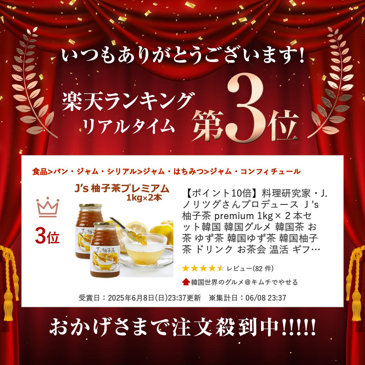 料理研究家・J.ノリツグさんプロデュース J's 柚子茶 premium 1kg×2本セット 常温便・冷蔵便可 【送料無料】/韓国 韓国グルメ 韓国茶 お茶 ゆず茶 韓国ゆず茶 韓国柚子茶 ドリンク お茶会 温活 ギフト 贈り物 中元 歳暮 御祝 お祝い
