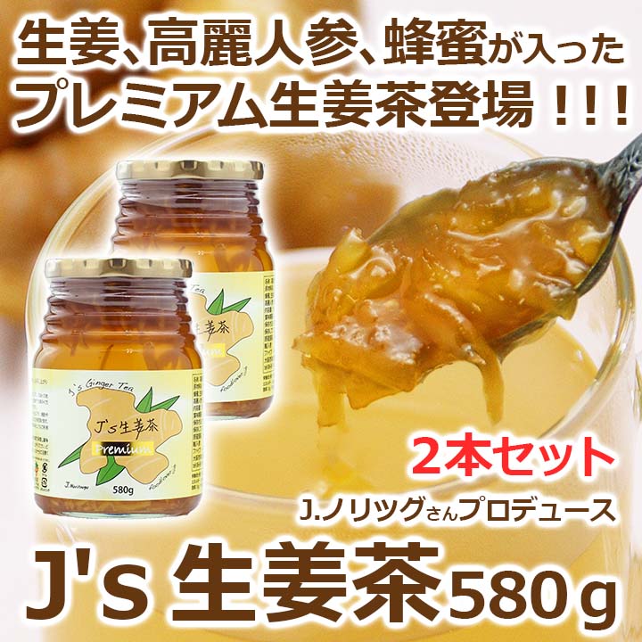 【50%OFFクーポン配信中!11/19(水)23:59まで】J’s 生姜茶プレミアム 580g×2本 常温便・冷蔵便可【送料無料】※賞味期限2026年1月21日の訳あり品/ 料理研究家・J.ノリツグさんプロデュース 高麗人参(紅参)蜂蜜入り生姜茶 韓国 韓国グルメ 韓国茶 お茶 温活 ギフト