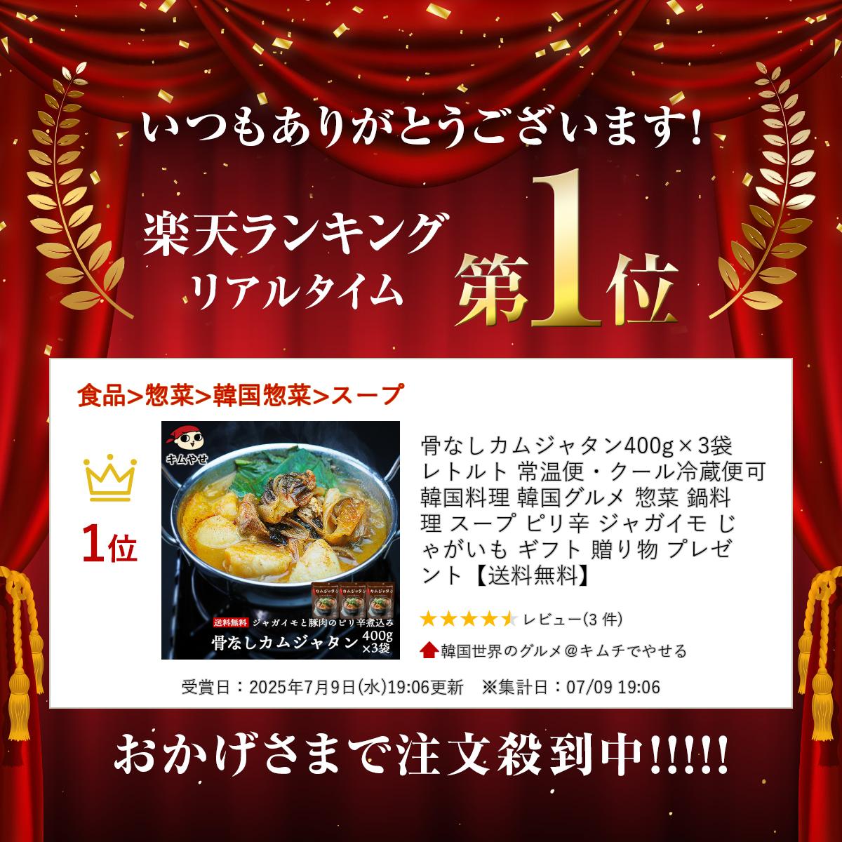 骨なしカムジャタン400g×3袋 常温便・冷蔵便可【送料無料】※賞味期限2026年3月6日/レトルト 韓国料理 韓国グルメ 惣菜 鍋料理 スープ ピリ辛 ジャガイモ じゃがいも ギフト 贈り物 プレゼント