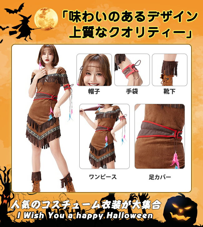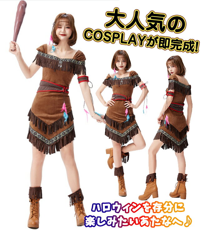 送料無料 ハロウィン 衣装 レディース インディアン ネイティブ 先住民 野蛮人 セクシー コスプレ コスチューム 大人 仮装 変装 服 セットアップ ハロウィーン パーティーグッズ