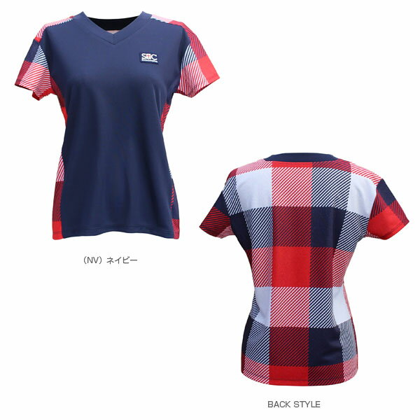 セントクリストファー テニス・バドミントンウェア(レディース) パネルチェックVネックゲームシャツ/レディース(STC-BCW6413)
