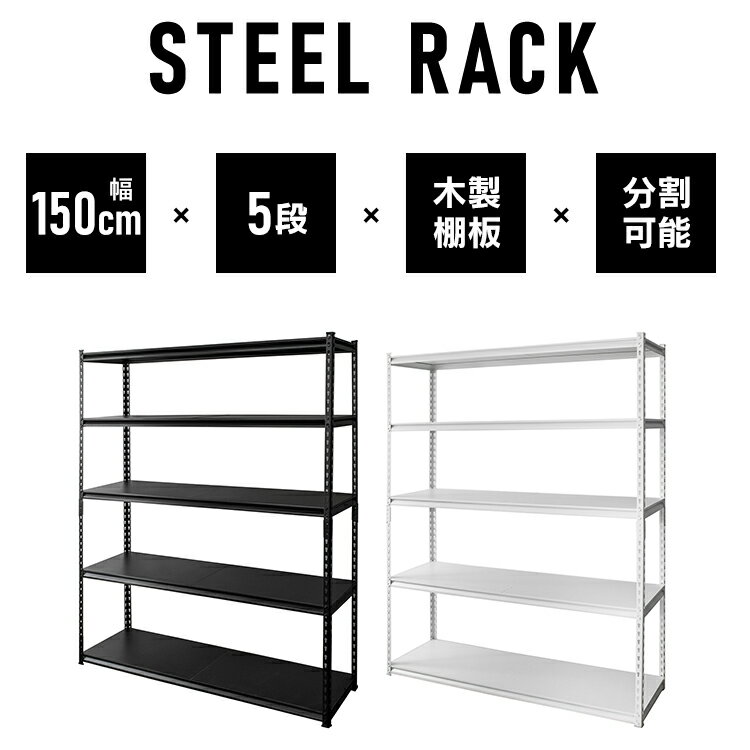 スチールラック 幅150cm 5段 STR-1500スチール製 スチール棚 スチールシェルフ ラック オフィス 収納 棚 ラック 部屋 在宅勤務 テレワーク PC周辺 デスク シンプル インテリア デスクサイド [PICK]