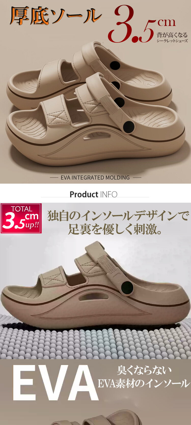 サンダル メンズ 厚底 EVAソール クッション性 トレンド おしゃれ 夏 カジュアル 海 ブラック ベージュ 3.5cmソール 2way