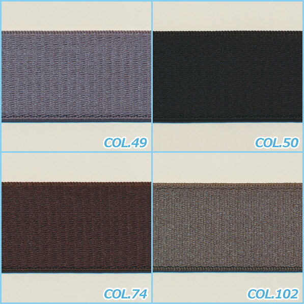 [メーカー] SHINDO(S.I.C.) SHINDO社製(S.I.C.)ウエストストレッチテープです。サテン調の上品な光沢としっかりとした厚みのある伸縮性テープになります。ポリウレタンゴムを採用しておりソフトな肌触り(肌当たりが良い)が特徴のゴムで、ウェストゴムとしてのご使用にオススメです。※メートルカット品は、実物確認用のサンプルまたはご試作用途向けに販売をいたしております(数量「3」でお求めいただくと、3メートルを1本でお届け)。巻でのご購入前に必ずメートルカット品にて実物をご確認ください。 ■長さの選択■ メートルカット(1〜10mまで) 20メートル巻 ■サイズの選択■ 30mm 40mm 50mm【商品スペック】 販売単位: 1メートル 幅: 50mm 材質: ポリエステル85% ポリウレタン15% 厚み: 1.6mm 染色: 後染め メーカー: SHINDO(S.I.C.) 【バリエーション】 3サイズ(30mm、40mm、50mm)、全8色をご用意 【お届け目安】 お急ぎ出荷に対応いたしておりませんため、ご注文確定後4〜5営業日後にお手元に届きます 【洗濯記号】 【ご購入の際の注意点】 ・ディスプレイ性能や設定などにより、商品写真の色と実物が多少異なる場合はあります ・念のため、使用用途に合ったテストをした後にご使用ください ・継ぎ目の入る場合が稀にございますが、その際は余分を入れております ・染色ロットにより多少色目が異なることがあります ・商品の特性により、幅の表示が実物と多少異なることがあります ・高温度の蒸気やアイロン、プレスなどの熱処理により変色、形態変化、移染することがあります ・縫製される生地と本製品の収縮率が異なる場合、シワ等が発生することがあります ・濃色の製品を白色又は淡色の生地と組み合わせて使用すると色移りする場合があります ・ホツレの原因となりますので、製紐、織物のパイピング製品は、縫製の際、耳部分を切り落とさないでください ・ニードル商品は、片耳がループ組織の織製品ですので、このループが解れると織終り方向よりラン現象を起こし、組織破壊に繋がる恐れがあります(切り口を二つ折にする等、ループが解れ難い様にしてください) ・カット面がホツレや糸抜けすることがあり、また強い力が掛かると目ずれすることもあります ・ボビン等に巻かれた商品は、縫製後の収縮を避けるため、一昼夜放反後にご使用ください ・ダンボールケース等による高温多湿下での長期保管は、黄変の原因となりますため、お避けください ・ノックスガス等の影響により黄変、変色することがあります