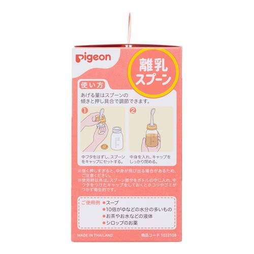 ★注目キャンペーン情報★ 商品情報商品詳細ピジョン 離乳スプーン R●ボトルとスプーンがひとつになった離乳アイテム。●片手でこぼさず楽に与えることができます。●スプーンに慣れる練習に●果汁・スープを与える時に●お薬を飲む時に●普通のスプーンのように、何度もお口へ運ぶ必要がなく、初めての赤ちゃんでもスプーンからスムーズに飲めます●ボトルがやわらかいので、押して適量を出すことができます。●コンパクトなので持ち運びにも便利。●食洗機OKで、おていれも簡単。使用方法(消毒方法)煮沸:〇、レンジ:×、薬液:〇規格概要★ボトル・スプーン・キャップ・中フタ・原材料:ポリプロピレン・耐熱温度:120度・耐冷温度:-20度・(消毒方法)煮沸:〇、レンジ:×、薬液:〇・容器容量:175ml、最大目盛り:120ml★付属ブラシ・ブラシ部:ナイロン/柄部:ステンレス※付属ブラシは消毒できません。注意事項★使用上の注意・ご使用前に、必ず分解・洗浄してください。保管するときは、洗浄を十分に行い、よく乾かしてください。(スプーン内部の洗浄は付属のブラシをご使用ください。)・火のそばに置かないでください。・破損するおそれがありますので、冷凍庫に入れないでください。・電子レンジでのご使用はできません。・容器内に食材を入れた状態での持ち運びはおやめください。原産国タイ発売元、製造元、輸入元又は販売元ピジョンお問い合わせ先ピジョン株式会社103-8480 東京都中央区日本橋久松町4-4お客様相談室 TEL0120-741-887受付時間9時〜17時(土・日・祝日を除く)広告文責楽天グループ株式会社 電話:050-5444-7654[ベビー お食事 ]
