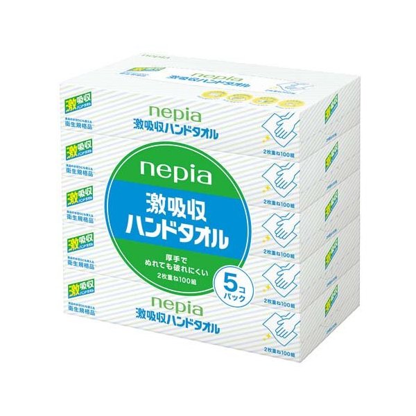 ネピア 激吸収ハンドタオル 200枚入(100組)*5個パック 【ネピア(nepia)】の紙類