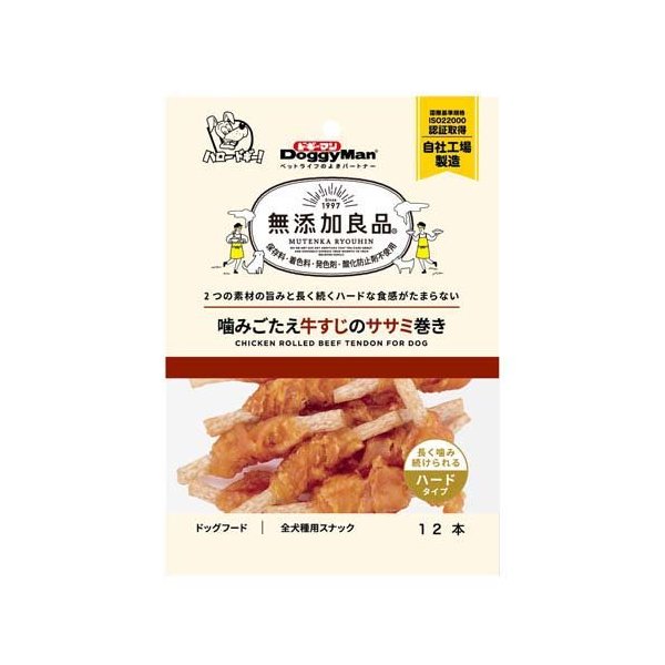 ドギーマン 無添加良品 噛みごたえ牛すじのササミ巻き 12本入 【無添加良品】 犬用おやつ(ジャーキー・乾物)