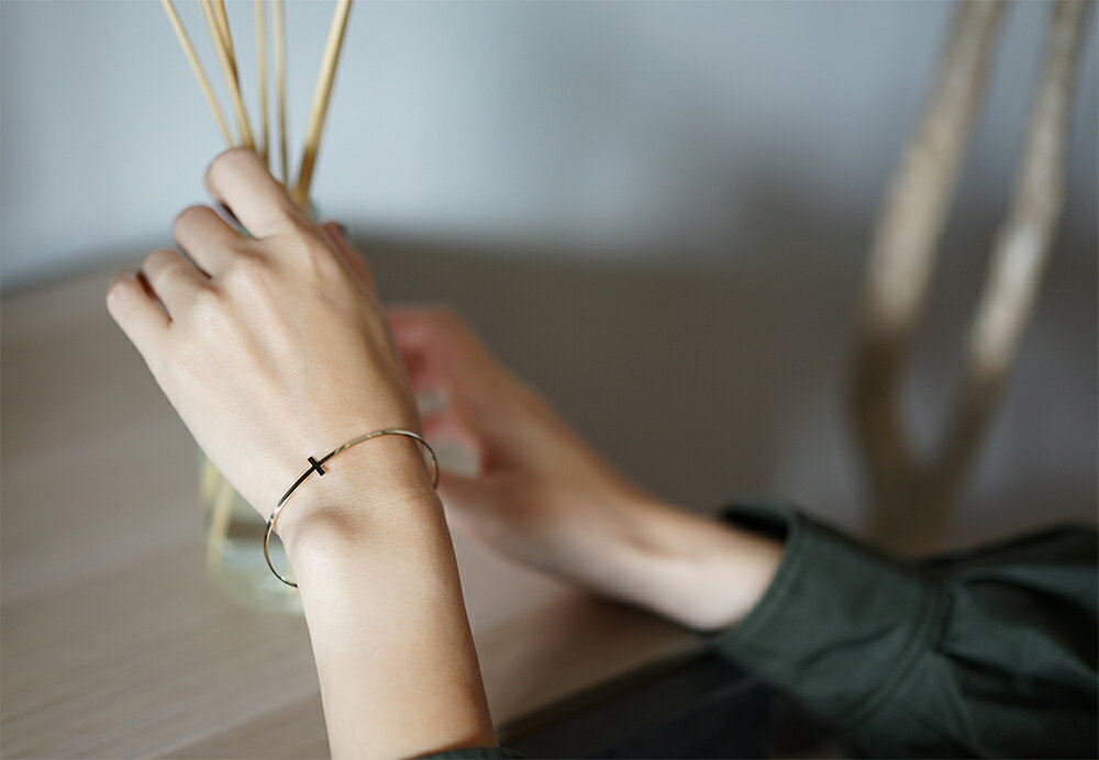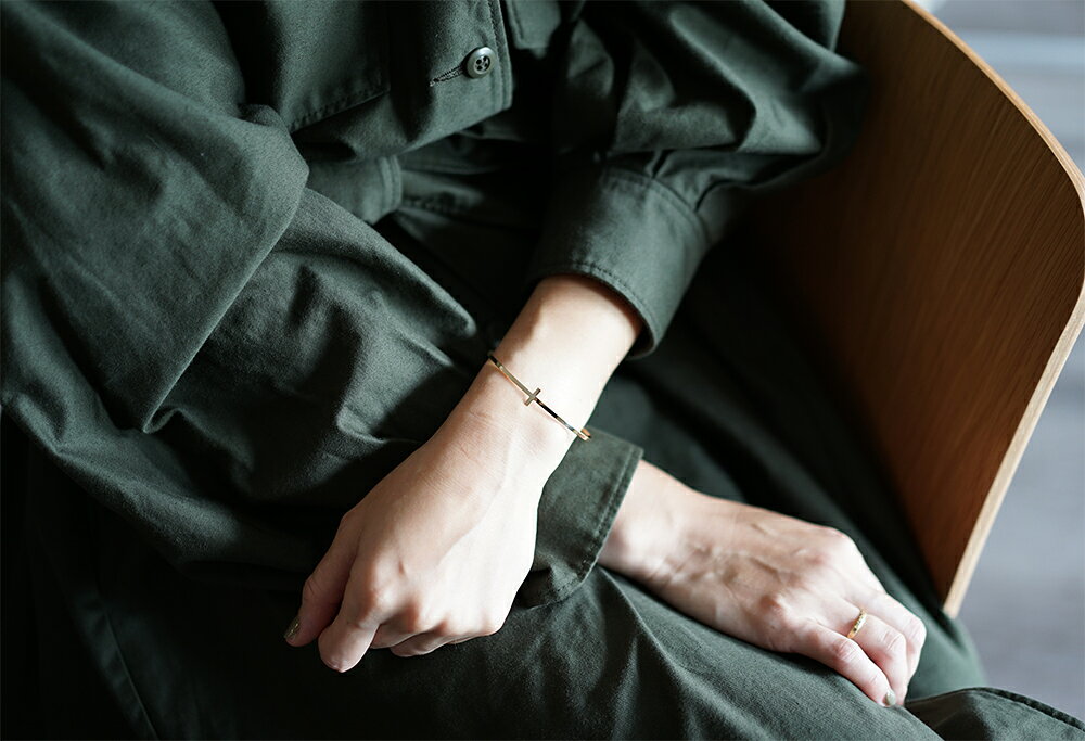 RAPA JEWELRY(ラパジュエリー)楽天市場店K18 ベイビー クロス バングル#プラチナ可アイテム説明スペックその他甘さを省きましたラパのベイビークロスシリーズは大抵甘めな要素を取り入れていました。それがこのバングルではキッパリと甘めな要素を取り、素直にシンプルな見た目でお作りいたしました。いつもの横向きのクロスに縦部分をくるりと手首に巻きつけるようなさっぱりとしたデザインになりました。程よいサイズのクロスが手首を際立たせてくれますが、すごく華美な印象ではなく手肌にスッと馴染んでいくような、そんなつけ心地です。デニムやニット、ワンピースなど様々なスタイリングにも自然と馴染むのが嬉しい。バングルはささっとつけられるので、チェーンのブレスレットよりご自身で簡単に装着できます。地金素材K18イエローゴールド※プラチナ可大きさ幅(最大):約9mm / 幅(最小):約2mm / 厚み:約0.7mm生産国made in JAPAN※当店の商品は1点1点手作業で制作しておりますハンドメイドジュエリーとなりますため、同じ商品でも若干の個体差が生じる場合が御座います。ブレスレットのサイズ選びについて当店で販売するブレスレットは基本的に14〜17cmの約3cm調節可能なものを通常仕様としておりますが、ご希望に応じて14cm、15cm、16cm、17cm、18cm、19cm、20cmなど1cm単位で延長や短縮のカスタムが可能で御座います。(延長の場合は追加料金を頂戴しております。)着用感手首周り特徴ぴったり+〜0.5cmバングルなどにおすすめのサイズ感。逆に華奢なチェーンなどは短すぎると腕に食い込んだり、内側から負荷がかかり破損の原因になりやすいので注意が必要です。また慣れるまで着け外しに時間がかかるかもしれません。標準+1.0cm〜1.5cm当店の推奨サイズとなります。程よいゆとり感でスキンジュエリーなどに特におすすめ。チェーンが邪魔にならないので普段使い以外にもビジネスシーンなどでもストレスなくお召し頂けます。またRAPAの通常仕様はこちらの着用感を想定して製作しております。ゆったり+2.0cm〜2.5cm長さに余裕があるため細見え効果があり、特にボリュームのあるチェーンなどにおすすめのサイズ感。かっちりした印象よりもカジュアル感のある長さです。ルーズ+3.0cm〜腕の動きに合わせてブレスレットも煌めきます。ラグジュアリーな印象を与えてくれる場合もありますが、サイズやアイテムによってはだらしなく見えたりするため上級者向け。またチェーンが長すぎると引っ掛けて破損させてしまう恐れがあるため注意が必要です。※バングル商品は延長や短縮のカスタムは出来かねますがご自身で若干のサイズ調整が可能で御座います。製造金属アレルギー対応製造方法オーダーの種類日本製(国産)◎(ニッケルフリー)ハンドメイド(鍛造・鋳造共に)セミオーダー(あす楽を除く)タイプレディース / メンズ / ユニセックス / ペア / カップル / 大人 / 女性用 / 男性用スタイルカジュアル / フォーマル / モード / オフィス / 普段使いシーンプレゼント / ギフト / 贈り物 / 結婚式 / ウエディング / 冠婚葬祭 / 葬儀 / 葬式 / パーティ / お呼ばれ / 卒園式 / 卒業式 / 入園式 / 入学式 / クリスマス / バレンタインデー / ホワイトデー / 敬老の日 / 母の日年齢20代 / 30代 / 40代 / 50代 / 60代 / ニ十歳 / 三十歳 / 四十歳関連ワードシンプル / 人気 / おしゃれ / 最新 / トレンド / ブランド / オシャレ / プチプラ / かわいい / 高見え / 上品 / 高級 / お洒落 / 可愛い / きらきら / エレガント / アンティーク / かっこいい / 格好良い※プラチナでの製作は基本的にPt900でのお作りとなります。(ネックレス等のチェーン部分はPt850でのお作りとなります。)※K24やPt950など18金以外の素材を用いる場合は商品ページ内に記載させて頂いております。※ジュエリーやアクセサリーのつけっぱなしは貴金属の変色や破損のリスクが高まるため非推奨とさせて頂いております。スタイル別オススメタイプカジュアルマニッシュフェミニンモード長め長いロング短め短いショート大きい大ぶり大き目大きめ小ぶり小さい小さめ小さ目太目太め太い極太ごつめごつい幅広華奢細い細め細目極細必ずお読みください1.あす楽商品以外はご注文を頂いてから一つ一つお作りする受注生産商品です。(納期にお時間を頂いております)2.ご注文後の商品の変更(サイズ・地金・キャンセル等)がある場合は、必ず48時間以内にご連絡下さい。あす楽商品やそれ以降の場合は変更できかねたり、有料でのご対応となります。3.カスタム等の追加料金は買い物カゴの金額に反映されません。注文確定後、弊社で金額を修正しお知らせいたします。甘さを省きました。ラパのベイビークロスシリーズは大抵甘めな要素を取り入れていました。それがこのバングルではキッパリと甘めな要素を取り、素直にシンプルな見た目でお作りいたしました。いつもの横向きのクロスに縦部分をくるりと手首に巻きつけるようなさっぱりとしたデザインになりました。モデル着用:K18イエローゴ