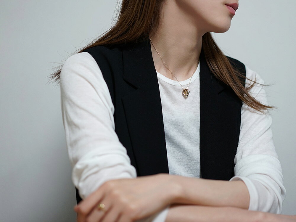 RAPA JEWELRY(ラパジュエリー)楽天市場店K18/Pt トリニティ ラージ ペンダントトップアイテム説明スペックその他潔いシャープなフォルム胸元に輝く光の帯。トリニティラージペンダントトップは、ジュエリーの伝統的なモチーフである三連を、単なる「定番」で終わらせないために、現代のファッションにふさわしい洗練された感性で再構築したものです。計算し尽くされたバランスで絡み合い、ミニマルながらも確かな立体感を創り出します。甘く可愛らしい印象とは一線を画し、あえて丸みを抑えたシャープなフォルムと、鏡面仕上げの均一な輝きを追求しました。この潔い仕立てこそが、古き良きデザインに新しい命を吹き込み、「普遍的ながらも新しい感覚」として、世代を超えて愛される理由です。三つの異なる光が複雑に絡み合い、見る角度や光の加減によって輝きの表情を変化させます。そして、程よいサイズ感は、チェーンを通して着けた際に胸元で絶妙なバランスを保ち、その立体感がシンプルな装いにも深い奥行きを与えます。トレンドに敏感でありながら、本物志向へと移行する世代のあなたに。このペンダントトップは、いつものカジュアルスタイルに一点投入するだけで、洗練されたモード感と大人の余裕をプラスします。オフィスでは知的な印象を、休日には洗練されたおしゃれをさりげなく演出。トリニティと言えば、古き良き趣きに浸りつつも、時代を超えて引き継がれた本質的な美しさを、新しい感覚として長くご愛用いただけるよう、シンプルに、そして美しく仕上げました。地金素材K18イエローゴールド / K18ピンクゴールド / プラチナ大きさ直径:約13.4mm / 幅:約3.0mm / 厚み:約0.8mmチェーン(別売り)K18カットアズキチェーン 約40cm / 幅:約0.9mmK18カットアズキチェーン 約40cm / 幅:約1.0mmK18ベネチアンチェーン 約40cm / 幅:約0.5mmK18ベネチアンチェーン 約40cm / 幅:約0.6mm引き輪下3cmにアジャスター環付き※チェーンは別途追加料金にて承っております生産国made in JAPANその他・パーツを繋げてお作りしておりますためサークル部分に繋ぎ目があります。※当店の商品は1点1点手作業で制作しておりますハンドメイドジュエリーとなりますため、同じ商品でも若干の個体差が生じる場合が御座います。ネックレスの長さについて当店で販売するネックレスやオプションのチェーンは40cm、41cm、42cm、43cm、44cmなど追加料金にて1cm単位で延長による長さ調節が可能です。(一部商品は45cm、50cm、55cm、60cm、65cm、70cmなど5cm単位となります。)またネックレスはその長さによってそれぞれ呼び名が付けられております。長さ名称特徴35cm前後チョーカー最も短いタイプのネックレスで、首周りにフィットするような長さが特徴です。 ブライダルシーンでもよく使われています。40cm前後プリンセススタンダードな長さで百貨店や路面店などで販売される多くがこちらの長さになります。ちょうど鎖骨の辺りにかかるような長さでデコルテ周りをキレイに見せてくれます。50cm前後マチネーフランス語で午前中や演劇などの昼公演の意味の言葉で、欧米の社交界でよく使われる長さと言われています。70cm前後オペラオペラを観賞するためのドレッシーな衣裳に合う長さという意味で名付けられたと言われています。107cm以上ロープ基本的には2連や3連にして着けます。TPOに応じて着け方を変えられるため幅広いシーンで活用できます。※華奢なチェーンは極端にピッタリなサイズや極端に長いサイズの場合、負荷がかかったり引っ掛けたり破損のリスクが高まります。当店では通常仕様の40センチ~45センチ程を推奨しております。製造金属アレルギー対応製造方法オーダーの種類日本製(国産)◎(ニッケルフリー)ハンドメイド(鍛造・鋳造共に)セミオーダー(あす楽を除く)タイプレディース / メンズ / ユニセックス / ペア / カップル / 大人 / 女性用 / 男性用スタイルカジュアル / フォーマル / モード / オフィス / 普段使いシーンプレゼント / ギフト / 贈り物 / 結婚式 / ウエディング / 冠婚葬祭 / 葬儀 / 葬式 / パーティ / お呼ばれ / 卒園式 / 卒業式 / 入園式 / 入学式 / クリスマス / バレンタインデー / ホワイトデー / 敬老の日 / 母の日年齢20代 / 30代 / 40代 / 50代 / 60代 / ニ十歳 / 三十歳 / 四十歳関連ワードシンプル / 人気 / おしゃれ / 最新 / トレンド / ブランド / オシャレ / プチプラ / かわいい / 高見え / 上品 / 高級 / お洒落 / 可愛い / きらきら / エレガント / アンティーク / かっこいい / 格好良い※プラチナでの製作は基本的にPt900でのお作りとなります。(ネックレス等のチェーン部分はPt850でのお作りとなります。)※K24やPt950など18金以外の素材を用いる場合は商品ページ内に記載させて頂いております。※ジュエリーやアクセサリーのつけっぱなしは貴金属の変色や破損のリスクが高まるため非推奨とさせて頂いております。スタイル別オススメタイプカジュアルマニッシュフェミニンモード長め長いロング短め短いショート大きい大ぶり大き目
