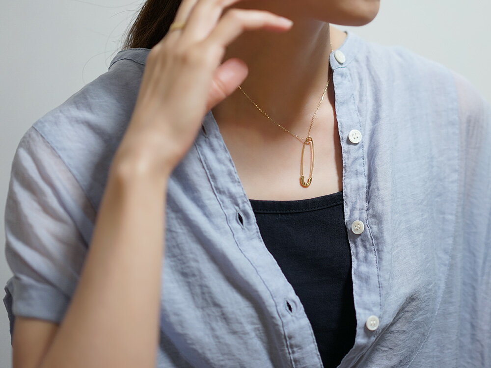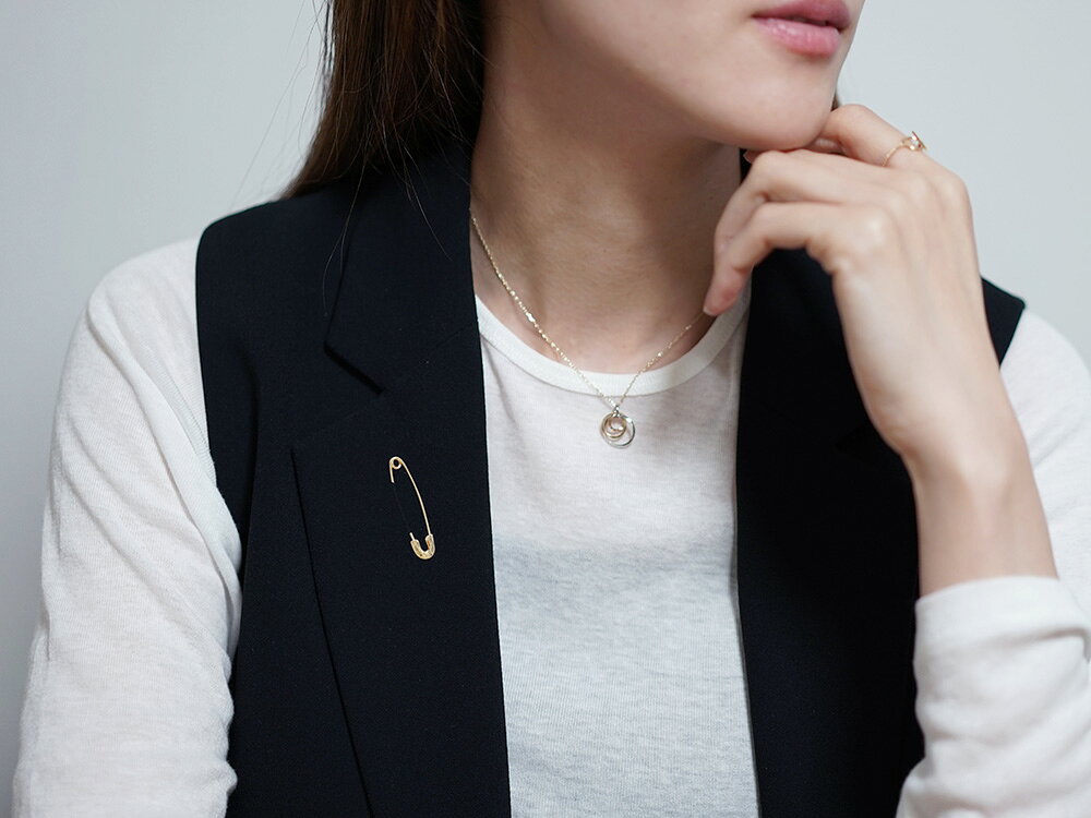 RAPA JEWELRY(ラパジュエリー)楽天市場店K18 ダイヤカット ピンブローチアイテム説明スペックその他ワンランク上の着こなしに安全ピンは、布や服を留めるためのありふれた日用品としてよく目にする道具ですが、パンクファッションでは装飾品としても用いられます。そんな安全ピンを、K18でそのままのデザインでお作りしましたので、ワンランク上の着こなしが可能です。また、ピンの先を収納する留め具部分には、通常では施されない職人による鱗のような細かな彫りの装飾が施されています。こちらのピンブローチは衣類に着ける前提で制作しておりますので、ピンの先が尖っております。お取り扱いには十分ご注意ください。ピンブローチは、カジュアルな要素を抑えつつ、品格と個性を両立させる「ハズし」のアイテムです。最も王道で上品な使い方は、ジャケットやコート、ストールなどに留めること。ジャケットの襟や上質なウールコートの胸元に留めることで、シンプルな装いが一気に格上げされます。特にモノトーンやネイビー、キャメルといった落ち着いた色のアイテムに合わせると、ゴールドが際立ち、洗練された印象に。少し遊び心を取り入れたい場合は、ボタンをひとつ開けたシャツの襟元にさりげなく留めるのがおすすめです。カッチリとしたシャツスタイルに上品な輝きが加わり、こなれた雰囲気を演出できます。さらに、上質なシルクのスカーフやカシミヤのストールを巻いた際、その結び目やドレープを留めるのに使うと、エレガントな装いに程よいエッジが加わり、普通のブローチよりも断然ステキに見えます。地金素材K18イエローゴールド or K18ピンクゴールド or K18ホワイトゴールド※プラチナ不可大きさ全長:約40.0mm / 幅:約9.8mm / 先端厚み:約2.5mm / 芯:約0.9mm※当店の商品は1点1点手作業で制作しておりますハンドメイドジュエリーとなりますため、同じ商品でも若干の個体差が生じる場合が御座います。ネックレスの長さについて当店で販売するネックレスやオプションのチェーンは40cm、41cm、42cm、43cm、44cmなど追加料金にて1cm単位で延長による長さ調節が可能です。(一部商品は45cm、50cm、55cm、60cm、65cm、70cmなど5cm単位となります。)またネックレスはその長さによってそれぞれ呼び名が付けられております。長さ名称特徴35cm前後チョーカー最も短いタイプのネックレスで、首周りにフィットするような長さが特徴です。 ブライダルシーンでもよく使われています。40cm前後プリンセススタンダードな長さで百貨店や路面店などで販売される多くがこちらの長さになります。ちょうど鎖骨の辺りにかかるような長さでデコルテ周りをキレイに見せてくれます。50cm前後マチネーフランス語で午前中や演劇などの昼公演の意味の言葉で、欧米の社交界でよく使われる長さと言われています。70cm前後オペラオペラを観賞するためのドレッシーな衣裳に合う長さという意味で名付けられたと言われています。107cm以上ロープ基本的には2連や3連にして着けます。TPOに応じて着け方を変えられるため幅広いシーンで活用できます。※華奢なチェーンは極端にピッタリなサイズや極端に長いサイズの場合、負荷がかかったり引っ掛けたり破損のリスクが高まります。当店では通常仕様の40センチ〜45センチ程を推奨しております。製造金属アレルギー対応製造方法オーダーの種類日本製(国産)◎(ニッケルフリー)ハンドメイド(鍛造・鋳造共に)セミオーダー(あす楽を除く)タイプレディース / メンズ / ユニセックス / ペア / カップル / 大人 / 女性用 / 男性用スタイルカジュアル / フォーマル / モード / オフィス / 普段使いシーンプレゼント / ギフト / 贈り物 / 結婚式 / ウエディング / 冠婚葬祭 / 葬儀 / 葬式 / パーティ / お呼ばれ / 卒園式 / 卒業式 / 入園式 / 入学式 / クリスマス / バレンタインデー / ホワイトデー / 敬老の日 / 母の日年齢20代 / 30代 / 40代 / 50代 / 60代 / ニ十歳 / 三十歳 / 四十歳関連ワードシンプル / 人気 / おしゃれ / 最新 / トレンド / ブランド / オシャレ / プチプラ / かわいい / 高見え / 上品 / 高級 / お洒落 / 可愛い / きらきら / エレガント / アンティーク / かっこいい / 格好良い※プラチナでの製作は基本的にPt900でのお作りとなります。(ネックレス等のチェーン部分はPt850でのお作りとなります。)※K24やPt950など18金以外の素材を用いる場合は商品ページ内に記載させて頂いております。※ジュエリーやアクセサリーのつけっぱなしは貴金属の変色や破損のリスクが高まるため非推奨とさせて頂いております。スタイル別オススメタイプカジュアルマニッシュフェミニンモード長め長いロング短め短いショート大きい大ぶり大き目大きめ小ぶり小さい小さめ小さ目太目太め太い極太ごつめごつい幅広華奢細い細め細目極細必ずお読みください1.あす楽商品以外はご注文を頂いてから一つ一つお作りする受注生産商品です。(納期にお時間を頂いております)2.ご注文後の商品の変更(サイズ・地金・キャンセル等)