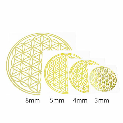 フラワーオブライフ(生命の花) 金色 メタル(金属) ステッカー 4枚セット 4サイズ(直径:3,4,5,8cm 各1枚) 幾何学模様【メール便対応可】