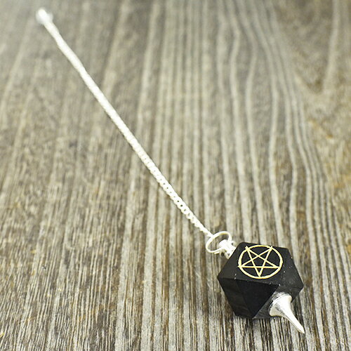 五芒星(ペンタグラム) ブラックオニキス ペンデュラム 金具部分:銀色 天然石 パワーストーン 和柄【メール便対応可】