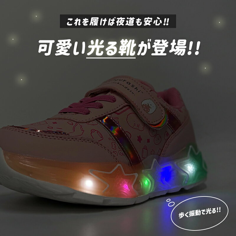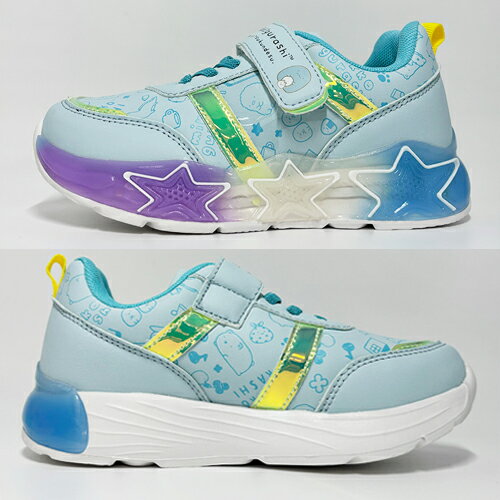 KT【★光る靴 すみっコぐらし フラッシュ スニーカー エメGR 16~19cm】子ども こども キッズ シューズ 靴 くつ フラッシュ グッズ キャラクター 16cm 17cm 18cm 19cm 服 幼児 すみっコ すみっこ とかげ ぺんぎん 女児 女の子