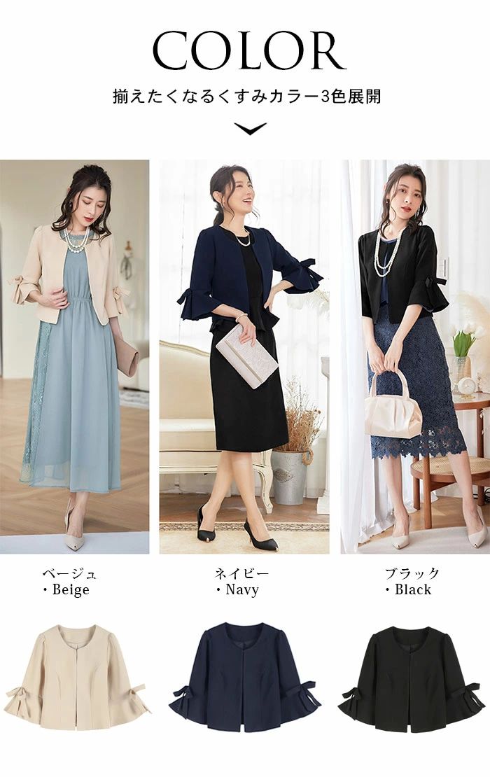 ママ フレア 七分袖 カーディガン フォーマルジャケット ノーカラージャケット ボレロ ブレザー ショートジャケット ジャケット