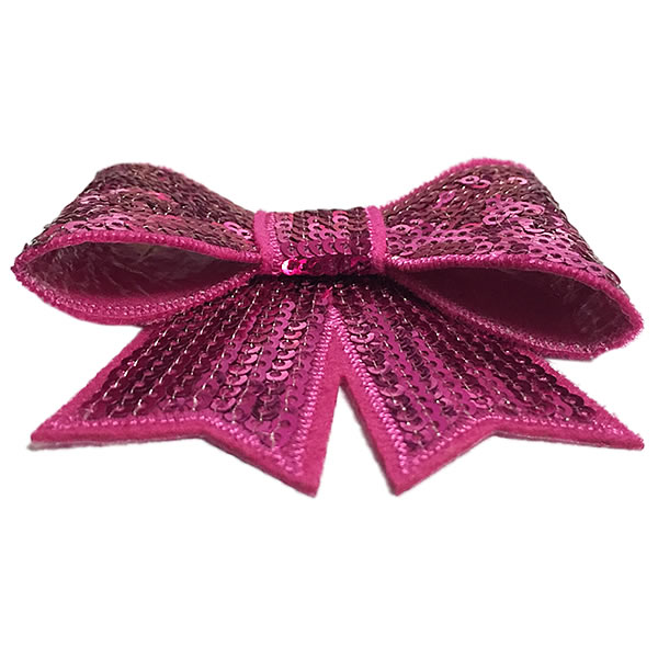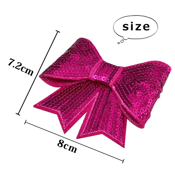 ワッペン スパンコール アイロン接着 縦7.2cm×横8cm ピンク リボン(大) アイロンワッペン 立体ワッペン デコ ダンス 入園 入学 アップリケ あっぷりけ wappen