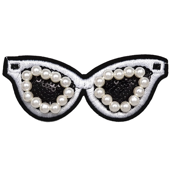 ワッペン スパンコールワッペン 縦3.8cm×横9.2cm めがね サングラス プラスチックパール 手芸 入園 入学 デコ ダンス わっぺん WAPPEN wappen アップリケ あっぷりけ【メール便可】
