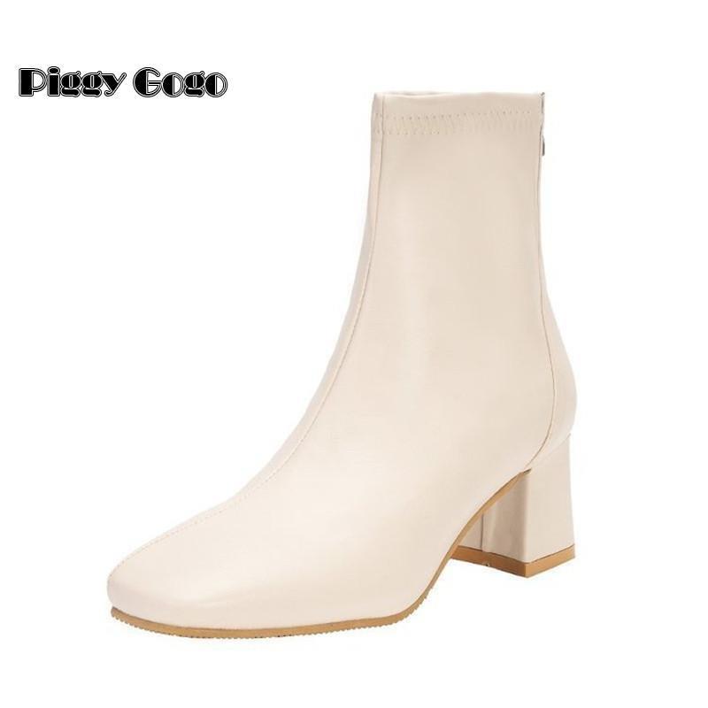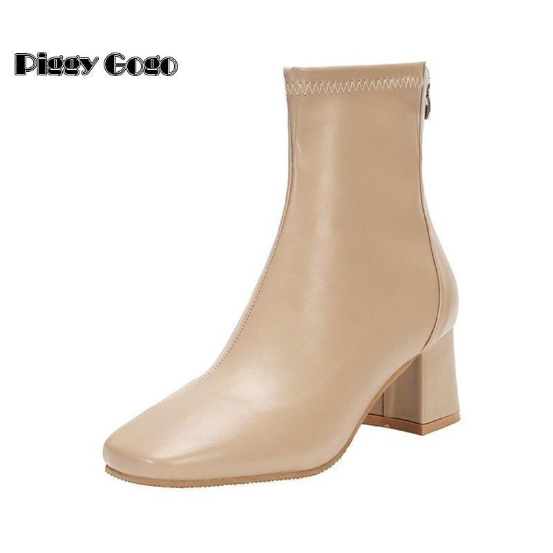 ショートブーツ レディース ブーツ 太ヒール ソフトタッチ ストレッチブーツ フェイクレザー センターライン シューズ 美脚 秋冬 靴 歩きやすい