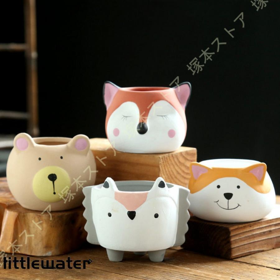 植木鉢 置き物 陶器鉢 置物 可愛い キツネ セラミック 工芸品 フラワーポット 飾り おしゃれ 植物コンテナ 室内装飾 植物クリスマス 誕生日 ギフト 植物なし