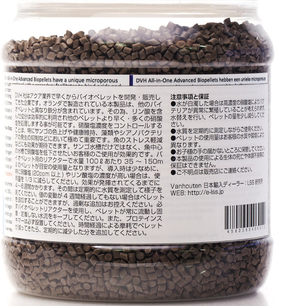 JAN: 4580290406912 「最短お届け日」でのお届け日を希望の場合、必ず「最短お届け日」を指定してください ※お届け日の指定がない注文は1-3日後の出荷となりますのでご注意ください。 ※追跡可能メール便の場合、最強翌日配送対象商品であってもお届け日を指定することはできません。 当店は39(サンキュー)ショップです 送料込みで3,980円以上送料無料 ※沖縄・離島・一部地域への配送は、9,800円(税込)以上で送料無料となります。 ■送料無料商品について 送料別の商品と一緒に注文された際も、購入金額が3980円(沖縄9800円)以上の場合は送料無料になります。 ・小型宅配便・宅配便(日本郵便) ※対面配達(受取サイン必要) ※簡易梱包にご協力お願いします。自動封函機梱包の為、大きめの箱にエアークッションで囲む梱包を基本とします。 ※複数注文の場合、複数倉庫から荷物をお届けする場合もあります。あらかじめご了承ください。 ※沖縄や離島の場合は1週間程かかる場合もあります。 ■注意事項 ・お互いにスムーズな取引の為、利用規約(会社概要)を必ずお読みください。 ・「最強配送」は日時指定必須です。必ず日時指定をしてください。指定がない場合は1-3日後の出荷となります。 ・リーズナブルな価格で販売していますが、商品はすべて新品になります。 ・キャンセルや返品は受け付けていませんので、返品商品などの再販は致しておりません。ご安心ください。 ・ 商品名にHz記載がある場合、50Hz、60Hzの間違いに気をつけてください。注文後の変更はできません。 ・注文後のお届け先住所変更や部屋番号などの記入漏れは有料で承ります。お間違い無きようご注文して下さい。 ・「不在配達通知書」が入った場合は、速やかに郵便局に連絡してください。 「不在配達通知書」の有無に関しては当社は一切関与いたしません。 ・3日以降配達されない場合は、発送通知の「お問い合わせ番号」を基に速やかに郵便局に連絡してください。再配達はお申し出がない限り行っていないようです。 ※通販取引に神経質な方、難癖付ける方、思い込みが激しい方、すぐに不安になられる方はご遠慮ください。 リーズナブルな価格でご提供するとともにスムーズな取引を心がけています。 ■商品説明DVH社はアクア業界で早くからバイオペレットを開発・販売してきた企業です。オランダで製造されている本製品は、他のバイオペレットと異なり鉄分が含まれています。その為、リン酸を含んだ成分は効率的に利用され他のペレットより早く・多くの硝酸塩を処理することが可能です。硝酸塩濃度をコントロールすることは、特にサンゴの色上げや健康維持、藻類やシアノバクテリアの発生の抑制などにおいて極めて重要です。魚のストレス軽減などにも効果が期待できます。サンゴ水槽だけでなく、魚中心の水槽で硝酸塩を低下させたいお客様のご使用が効果的です。有限会社LSS研究所■関連商品DD リン酸塩吸着剤 ローワフォス 100ml 4032974404016DD リン酸塩吸着剤 ローワフォス 250ml 4032974404023DVH オールインワン アドバンスバイオペレット 1000ml 4580290406912DVH オールインワン アドバンスバイオペレット 500ml 4580290406905H&S カルシウムメディア 2Kg 3300200 4540103591006LSS エクストリームバイオペレット 1000ml 2000L水槽分4580290406530LSS エクストリームバイオペレット 100ml 4580290406509LSS エクストリームバイオペレット 200ml 4580290406516LSS エクストリームバイオペレット 500ml 4580290406523ウルトラライフ リキッド フォスフェイトリムーバー 60ml 4580398199914カミハタ パック入りリン酸吸着ろ材 コケ抑制パック 汽水/海水用 4971664190283カミハタ 珪酸塩吸着ろ材 シリケイトリムーバー 1500cc(赤)4971664190221カリブシー アラゴナイト カルシウムメディア ARM 小粒(ボトル) 3.78L4971664491236カリブシー アラゴナイト カルシウムメディア ARM 大粒(ボトル) 3.78L4971664491243グローテック RemoPhos Fe リン酸塩ケイ酸塩吸着剤 2-4mm 500ml 4032517200044シーケム デ・ナイトレイト 1L 0000116013703シーケム デ・ナイトレイト 250ml 0000116013604シーケム ピューリゲン 250ml 淡水・海水両用0000116016605ブルーライフ リーゲンエフエックス (REGAN FX) 250ml イオン交換樹脂再生剤 0858542003573バイオペレット用のリアクターで水量100Lあたり35〜150mlのぺレットが目安の使用量となりますが、導入時は少なめに、特に硝酸塩(20ppm以上)やリン酸塩の濃度が高い場合は、使用量を1/3に減らしてください。効果が発揮されてくるまでに4〜6週間かかります。その間は定期的に水質を測定して様子を見てください。値の変動が4週間経過してもない場合はペレットを追加することができますが、過剰な追加はお控えください。必ずパイオペレットリアクターを使用し、ペレットが常に流動し固着・定着しない水流をキープしてください。またプロテインスキマーは必ず設置してください。時間経過による摩耗でペレットが減ってきたら、定期的に減少した分を追加してください。海水魚用品|吸着剤・メディア