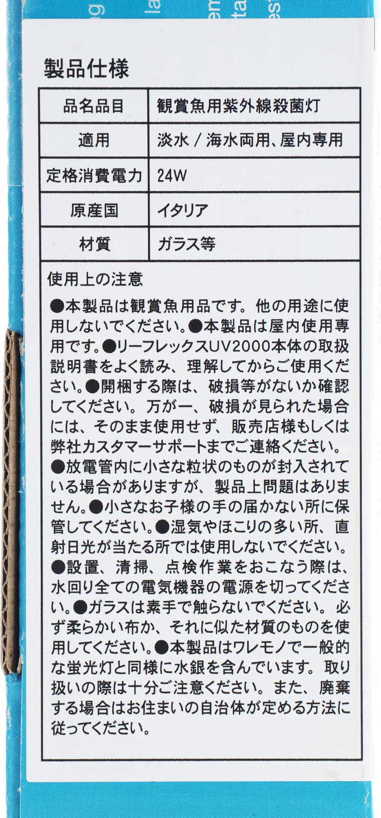 JAN: 4011708010686 「最短お届け日」でのお届け日を希望の場合、必ず「最短お届け日」を指定してください ※お届け日の指定がない注文は1-3日後の出荷となりますのでご注意ください。 ※追跡可能メール便の場合、最強翌日配送対象商品であってもお届け日を指定することはできません。 当店は39(サンキュー)ショップです 送料込みで3,980円以上送料無料 ※沖縄・離島・一部地域への配送は、9,800円(税込)以上で送料無料となります。 ■配送について ・宅配便(日本郵便) ゆうパック お急ぎの方!! 選べる「最短お届け日」 ※簡易梱包にご協力お願いします。自動封函機梱包の為、大きめの箱にエアークッションで囲む梱包を基本とします。 ※複数注文の場合、複数倉庫から荷物をお届けする場合もあります。あらかじめご了承ください。 ※沖縄や離島の場合は1週間程かかる場合もあります。 ■注意事項 ・お互いにスムーズな取引の為、利用規約(会社概要)を必ずお読みください。 ・「最強配送」は日時指定必須です。必ず日時指定をしてください。指定がない場合は1-3日後の出荷となります。 ・リーズナブルな価格で販売していますが、商品はすべて新品になります。 ・キャンセルや返品は受け付けていませんので、返品商品などの再販は致しておりません。ご安心ください。 ・ 商品名にHz記載がある場合、50Hz、60Hzの間違いに気をつけてください。注文後の変更はできません。 ・注文後のお届け先住所変更や部屋番号などの記入漏れは有料で承ります。お間違い無きようご注文して下さい。 ・「不在配達通知書」が入った場合は、速やかに郵便局に連絡してください。 「不在配達通知書」の有無に関しては当社は一切関与いたしません。 ・3日以降配達されない場合は、発送通知の「お問い合わせ番号」を基に速やかに郵便局に連絡してください。再配達はお申し出がない限り行っていないようです。 ※通販取引に神経質な方、難癖付ける方、思い込みが激しい方、すぐに不安になられる方はご遠慮ください。 リーズナブルな価格でご提供するとともにスムーズな取引を心がけています。 ■商品説明エーハイム「リーフレックスUV2000」専用の交換用UV-Cランプ(24W)は、飼育水の浄化に効果的な紫外線殺菌灯です。定期的な交換により、殺菌効果を維持し、水質を清潔に保ちます。・定格消費電力:24W・適用範囲:淡水・海水両用、屋内専用・材質:ガラス等・リーフレックスUV2000専用設計神畑養魚株式会社 カスタマーサポート079-297-5420■関連商品エーハイム ホースコネクタ 2個入 12/16mm リーフレックスUV350用74811484011708745540エーハイム ホースコネクタ 2個入 16/22mm リーフレックスUV500/UV800用 7481168 4011708745557エーハイム 殺菌灯交換球UVCランプ 7W リーフレックス350用 4011708008577エーハイム 殺菌灯交換球UVCランプ 9W リーフレックス500用 4011708008591エーハイム 殺菌灯交換球UVCランプ11W リーフレックス800用 4011708008584エーハイム 殺菌灯交換球UVCランプ 24W リーフレックスUV2000用 4011708010686エーハイム リーフレックスUV350 7W殺菌灯 (仕様変更新ロット) 4011708370582エーハイム リーフレックスUV500 9W殺菌灯 (仕様変更新ロット) 4011708370544エーハイム リーフレックスUV800 11W殺菌灯 4011708008409エーハイム リーフレックスUV1500 18W殺菌灯 4011708009192エーハイム リーフレックスUV2000 24W殺菌灯 4011708010525アクアリウム用品|殺菌灯|パーツ
