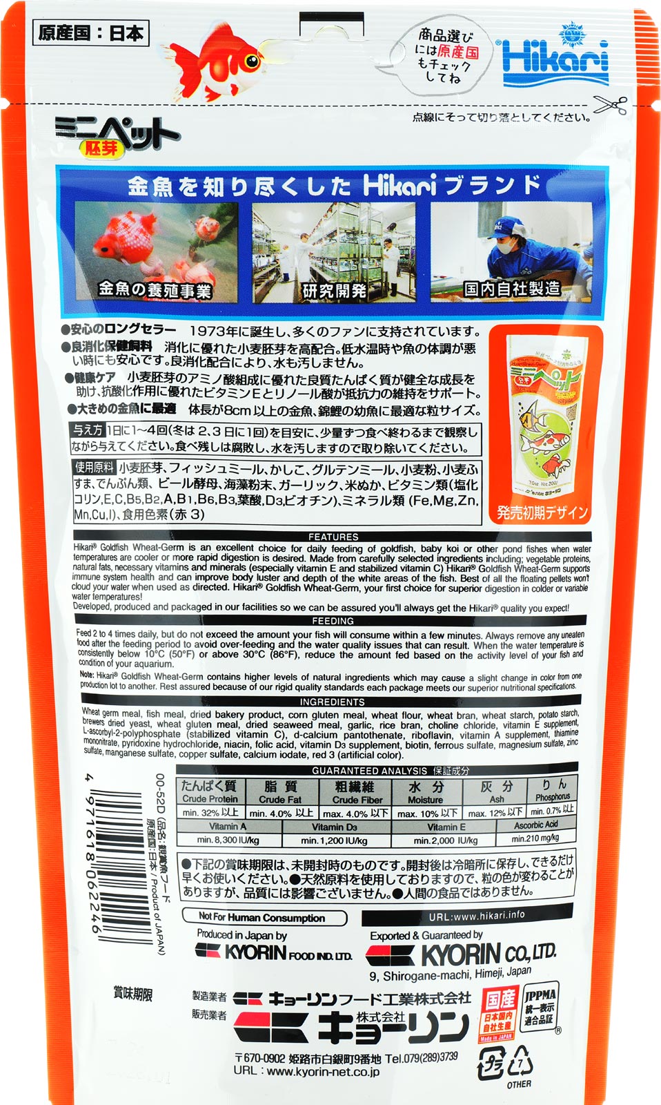 JAN: 4971618062246賞味期限 品質保持期限: 2028/01/31 「最短お届け日」でのお届け日を希望の場合、必ず「最短お届け日」を指定してください ※お届け日の指定がない注文は1-3日後の出荷となりますのでご注意ください。 ※追跡可能メール便の場合、最強翌日配送対象商品であってもお届け日を指定することはできません。 当店は39(サンキュー)ショップです 送料込みで3,980円以上送料無料 ※沖縄・離島・一部地域への配送は、9,800円(税込)以上で送料無料となります。 ■送料無料商品について 送料別の商品と一緒に注文された際も、購入金額が3980円(沖縄9800円)以上の場合は送料無料になります。 ■配送について 全国送料無料は追跡可能メール便(日本郵便)(ゆうパケット)でお届けします。 ポスト投函で受け取りラクラク! 12時までの注文で即〜翌日に出荷(日曜除く) メール便や定形外郵便は荷物の追跡が出来きず不安ですが、 荷物の追跡可能で安心です。(追跡番号は出荷後メールします。) 到着はおおむね発送日の翌日〜翌々日(土日祝祭日を除く) ・日時指定不可・荷物保証無し ※複数注文の場合、複数倉庫から荷物をお届けする場合もあります。あらかじめご了承ください。 ※厚さ3cmギリギリサイズの場合、緩衝材や防水材は不使用かつパッケージは外して梱包する場合があります。 ■注意事項 ・お互いにスムーズな取引の為、利用規約(会社概要)を必ずお読みください。 ・「最強配送」は日時指定必須です。必ず日時指定をしてください。指定がない場合は1-3日後の出荷となります。 ・リーズナブルな価格で販売していますが、商品はすべて新品になります。 ・キャンセルや返品は受け付けていませんので、返品商品などの再販は致しておりません。ご安心ください。 ・ 商品名にHz記載がある場合、50Hz、60Hzの間違いに気をつけてください。注文後の変更はできません。 ・注文後のお届け先住所変更や部屋番号などの記入漏れは有料で承ります。お間違い無きようご注文して下さい。 ・「不在配達通知書」が入った場合は、速やかに郵便局に連絡してください。 「不在配達通知書」の有無に関しては当社は一切関与いたしません。 ・3日以降配達されない場合は、発送通知の「お問い合わせ番号」を基に速やかに郵便局に連絡してください。再配達はお申し出がない限り行っていないようです。 ※通販取引に神経質な方、難癖付ける方、思い込みが激しい方、すぐに不安になられる方はご遠慮ください。 リーズナブルな価格でご提供するとともにスムーズな取引を心がけています。 ■商品説明キョーリン ミニペット胚芽 S 小粒 160gは、5cm以上の金魚や幼鯉向けの植物性完全栄養飼料です。消化・吸収しやすい小麦胚芽を高配合し、魚の健康と成長をサポートします。・粒サイズ:2.7~3.0mm・小麦胚芽を40%以上配合し、消化吸収に優れる・ビタミンEとリノール酸が豊富で、魚の抵抗力を維持・低水温時や魚の体調不良時にも適した保健用飼料おすすめポイント:低水温時や魚の体調不良時にも安心して与えられる保健用飼料です。株式会社キョーリン079-289-3171■関連商品キョーリン アイドル 210g SS 浮上性 金魚の餌 4971618011268キョーリン アイドル 500g SS 浮上性 金魚の餌 4971618011428キョーリン オランダゴールド 小粒 300g 4971618056313キョーリン プロリア 色揚 特小粒 200g (赤) 4971618051288キョーリン プロリア 特小粒 200g (紺) 4971618051271キョーリン ベビーゴールド SS 特小粒 210g 4971618021267キョーリン ベビーゴールド SS 特小粒 300g 4971618021311キョーリン ベビーゴールド SS 特小粒 500g 浮上性 4971618021427キョーリン ミニペット 200g 金魚・鯉の餌4971618012258キョーリン ミニペット 小粒 240g 金魚・鯉の餌 4971618012272キョーリン ミニペット 沈下性 小粒 200g 金魚・鯉の餌 (緑)4971618012265キョーリン ミニペット 胚芽 S 小粒 160g 金魚・鯉の餌4971618062246キョーリン ミニペット 胚芽 小粒 200g 金魚・鯉の餌 (白オレンジ)4971618062260キョーリン ミニペット色あげ 小粒 180g 金魚・鯉の餌 4971618022240キョーリン ランチュウベビーゴールドS 小粒 300g ×3袋 沈下(国産) (まとめ買い)4971618052315キョーリン ランチュウベビーゴールドS 小粒 300g 沈下(国産) (まとめ有)4971618052315キョーリン ランチュウベビーゴールドSS 特小粒 80g (国産) 4971618052162キョーリン 水キレイ ゴールドプロス 150g 4971618293107キョーリン 水キレイ ゴールドプロス 50g 4971618293039キョーリン 水キレイ ゴールドプロスベジ 150g 4971618293237餌えさ|金魚・鯉の餌|金魚用|浮上性キョーリン、ミニペット胚芽、金魚、幼鯉、飼料、小麦胚芽、完全栄養、消化吸収、ビタミンE、リノール酸、低水温、保健用飼料、浮上性、小粒、健康維持、成長促進、抵抗力維持、植物性飼料、5cm以上、160g