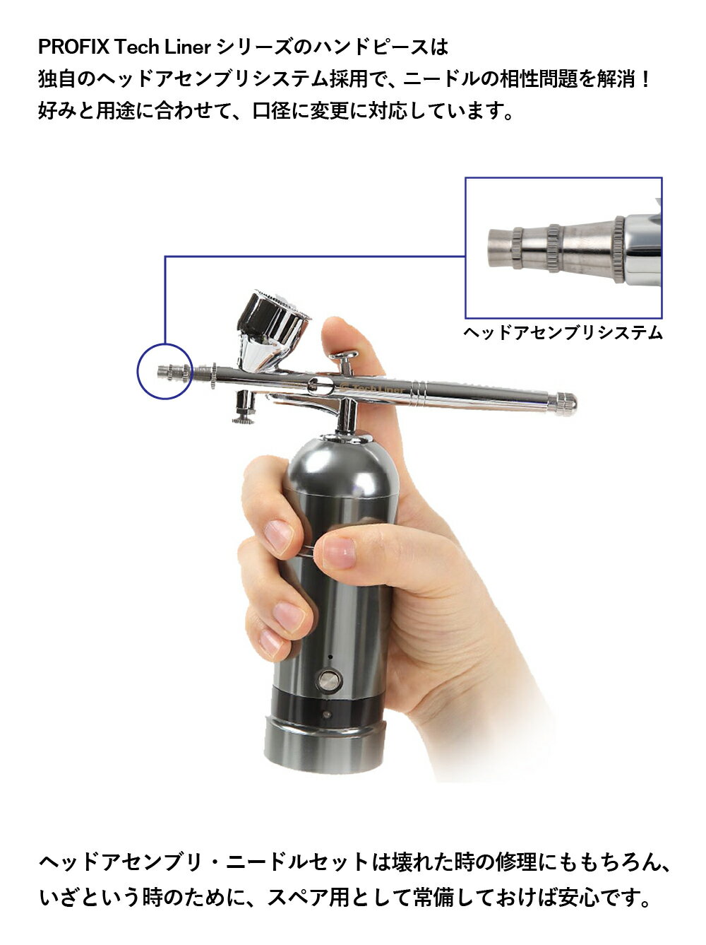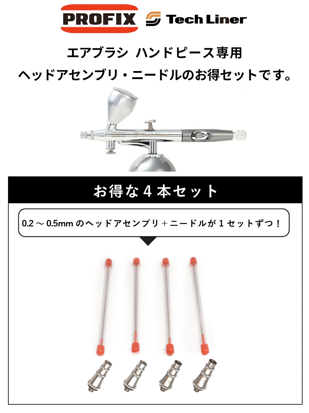 Tech Liner エアブラシ ハンドピース用 ヘッドアセンブリ・ニードルセット 0.2mm 0.3mm 0.4mm 0.5mm 全4サイズ セット 細吹き・太吹き対応 エアブラシ 整備 口径 変更 簡単 ケース付き PROFIX プロフィックス