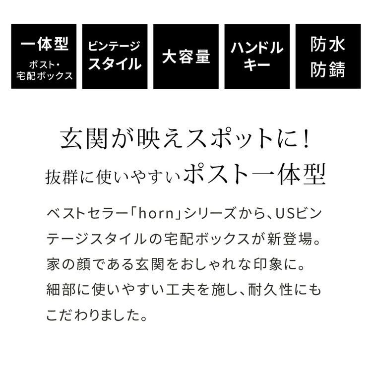 horn/ホルン ポスト一体型宅配ボックス "No.01" DB-001 宅配ボックス 宅配BOX ポスト 一体型 おしゃれ 置き配 ポスト付き 郵便受け 郵便 一戸建て 屋外 防水 大容量(代引不可)【送料無料】