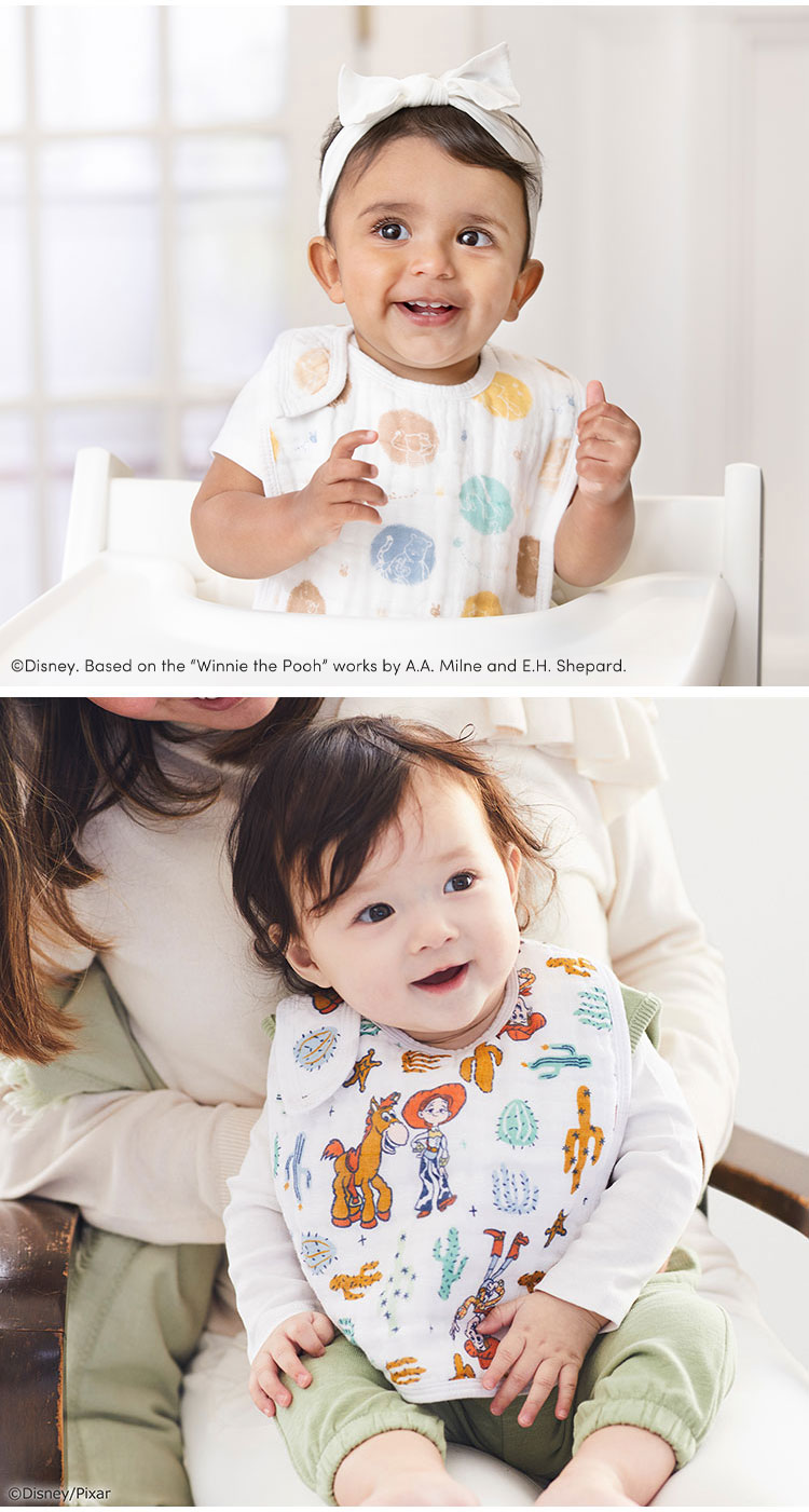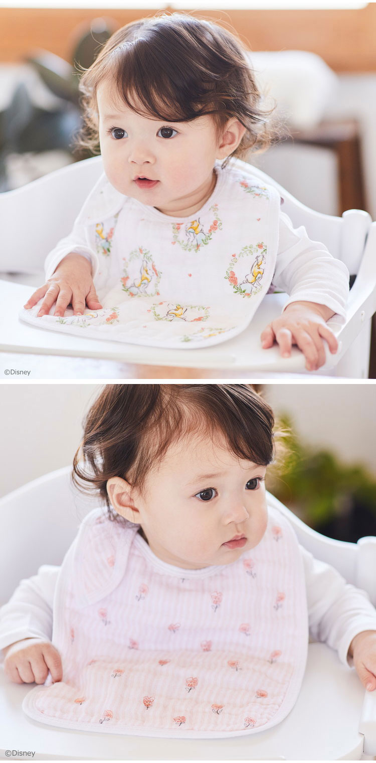 通気のよい柔らかい生地が赤ちゃんのお肌を優しく包みます。 大判サイズなのでよだれや食べこぼしをしっかりキャッチし、ダブルガーゼ3層構造で適度な厚みと吸水性があります。成長に合わせてスナップで調整ができ、着脱も簡単です。洗い替えに便利な3枚セット。 aden + anais(エイデンアンドアネイ)を代表するコットンモスリン素材で作られたディズニーベビーコレクションのスナップビブ(よだれかけ)。愛らしいディズニーキャラクターたちがデザインされています。 コットンモスリンは、細かな織りが特長の通気の良い素材です。厚手で吸水しやすく、赤ちゃんの繊細なお肌をやさしくサポートします。 よだれや食べこぼしをしっかりカバーしてくれる大判サイズなので、よだれの多いお子さまやお食事エプロンとしてもおすすめです。ダブルガーゼ3層構造の厚みと柔らかさがあります。3枚セットでお洗濯の洗い替えにも便利です。 ■ 成長に合わせてサイズ調整できる3段階スナップ ■ スナップボタンで取り付け・取り外しも簡単 ■ よだれの多いお子さまや、吐き戻しもしっかりカバー ■ 洗濯機で洗えて乾きやすい ※タンブラー乾燥はお避けください ■ ダブルガーゼ3層構造/ダブルガーゼ3層構造で、適度な厚みと柔らかさがお肌にやさしい/大判サイズでよだれや食べこぼしをしっかりキャッチ/スナップでサイズ調整可。洗濯機で洗えて便利な3枚セット/※商品により柄の出方が異なる場合がございます。 ※お使いのモニターにより、実際のものと色が異なる場合がございます。商品サイズW23×D34×H首回り約26〜35cm ※製造の都合により、サイズには若干の誤差が生じる場合がございます。商品重量140g対象年齢おたんじょうから原産国中国材質コットン100%お手入れ方法■洗濯機で洗えます。 ■タンブラー乾燥はお避けください。【送料について】沖縄、離島は送料を頂きます。