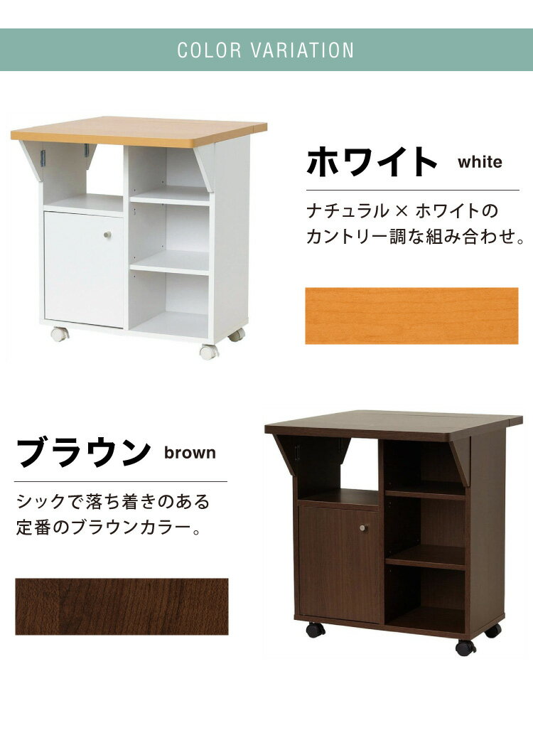 日本製 キッチンワゴン キャスター付き 幅60 キッチンカウンター バタフライ 天板開閉 キッチン収納 作業台 折りたたみ 背面化粧仕上げ 食器収納台 カントリー調 ホワイト おしゃれ(代引不可)【送料無料】