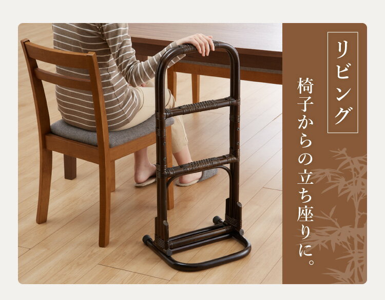 【レビュー報告で首かけ温感リング】天然籐らくらく立ち上がり手すり 立ち上がり サポート 補助 介護 膝 コの字型 グラつかない ラバーキャップ すべり防止 お年寄り(代引不可)【送料無料】