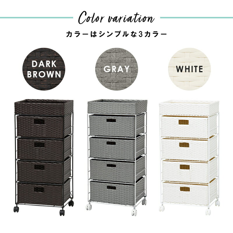 【サイズ】本体サイズ:(約)幅40.5×奥行30.5×高さ85cmカゴ部内寸:約幅37.5×奥行27.5×高さ8cm引出し内寸:約幅35.5×奥行27.5×高さ15cm【材質】主材:スチール張地:ポリエチレン【生産国】ベトナム【代引きについて】こちらの商品は、代引きでの出荷は受け付けておりません。【送料について】北海道、沖縄、離島は送料を頂きます。ランドリーラック 引き出し4杯タイプ幅30.5cm幅40.5cm幅50.5cm幅60.5cm