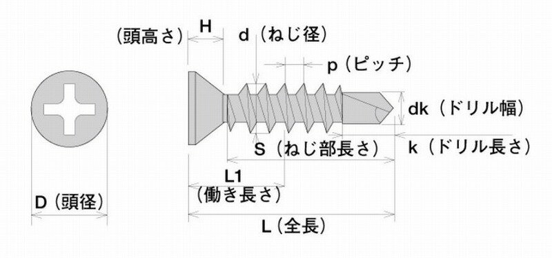 【商品特長】【ジャックポイントについて】一般的にはドリルねじと呼ばれます。ねじの先端部分にドリル刃先を有することにより、厚み1.6ミリ以上の鋼板に対し、穴あけ・タップ・締付けがワンタッチでできるねじです。ねじの先端(ポイント)に、今やロングセラーとなったジャックポイントはドリルねじの代名詞となっています。■別称 〈テックスビス ドリルビス セルフビス 鉄板ビス 等〉 建築板金外壁、屋根工事などで軽量型鋼(C型鋼)厚さ1.6ミリ以上の下地材に金具、木材等を下穴なしで取り付ける際に使用します。【ジャックポイント使用上の注意】ジャックポイントをねじ込む時、先端ドリル部が鉄板を貫通したら非常に軽く回ります。押える力や回転をゆるめて、ゆっくりとねじ込んでください。最終締め付けは、強過ぎると頭飛びなどの原因になります。特にインパクトドライバーを使う時は、最終締め付けを寸動で行ってください(寸動とはインパクトドライバーを断続的に少しずつ回転させること)。インパクトドライバーの最大トルクは、φ3.5ジャックポイント破断トルクの40倍以上あります。木質系材料を締結する場合や下地鋼鈑の間に間隔がある場合は、ドリルねじの性格上、板浮き現象が起こり、ねじの切り先部が折れることがあります。●アルミ板/鋼製下地用●ねじ山ピッチ=1.4mm(JIS B1124ドリリングねじ規格に準じる)【商品サイズ】L:25.0、D:6.0、H:1.6、d:4.2、p:1.4、k:3.5、dk:3.4、S:全ねじ、L1:15.0、適用板厚:2.3mmまで【用途】サッシを鉄骨に取付(アルミ板/鋼製下地用)【注意】木質系材料を締結する場合や下地鋼板と上部鋼板の間に間隔がある場合は、ドリルねじの性格上、板浮き現象が起こり、ねじの切り先部が折れることがあります。 ジャックポイントをねじ込む時、先端ドリル部が鉄板を貫通したら非常に軽く回ります。押える力や回転をゆるめて、ゆっくりとねじ込んでください。最終締め付けは、強過ぎると頭飛びなどの原因になります。特にインパクトドライバーを使う時は、最終締め付けを寸動で行ってください(寸動とはインパクトドライバーを断続的に少しずつ回転させること)。インパクトドライバーの最大トルクは、φ3.5ジャックポイント破断トルクの40倍以上あります。【仕様】SUS410 ステンレス特小頭(D=6)サラ荒目(パシペート) クロムフリー【材質】SUS410【送料について】北海道、沖縄、離島は送料を頂きます。