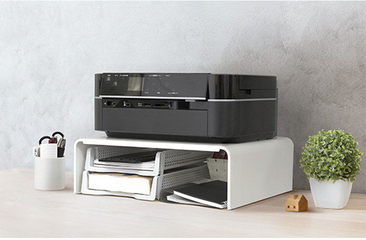 【商品説明】プリンター置きにピッタリなイージーラック。デスク周りのスペースを有効活用できます。キッチン周りでも活用できる便利な整理ラックです。組み立て不要で、お好みのスペースに置くだけで簡単設置。ラック下にもスペースを確保できます。頑丈なスチール製。配線用の穴付。すべり止め付。【耐荷重】約20kg【サイズ】約幅50×奥行40×高さ16.7cm【材質】亜鉛鉄板、PE発砲体(スベリ止メ)【生産国】日本【代引きについて】こちらの商品は、代引きでの出荷は受け付けておりません。【送料について】北海道、沖縄、離島は送料を頂きます。LINKモニター台 幅54cm 奥行12cmモニター台 幅54cm 奥行22cmモニター台 幅80cm 奥行22cmプリンターラック 幅50cm 奥行40cm