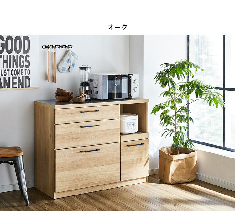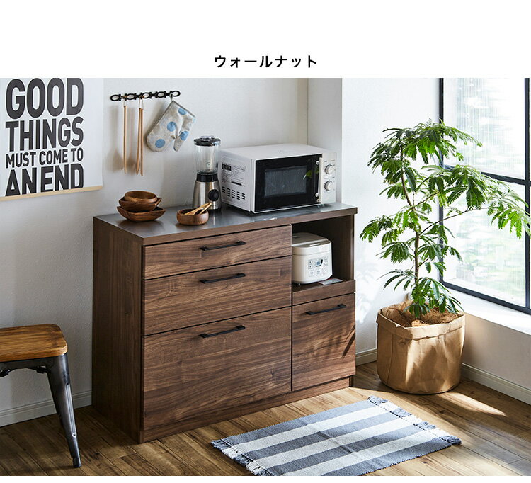 ■素材本体:MDF・強化紙天板:ステンレス■商品サイズ幅105×奥行45×高さ83cm■重量約50kg■生産国日本製■特徴・省スペースで家電と食器をバランスよく収納できます・引出は奥の物の出し入れがしやすいフルオープンレールを使用しています。・天板はステンレス仕様になっております■梱包サイズ幅106×奥行46×高さ84cm■備考完成品【代引きについて】こちらの商品は、代引きでの出荷は受け付けておりません。【商品配送時の注意点】こちらの商品は配送日時の指定ができません。あらかじめご了承下さい。【商品配送時の注意点】本商品は軒先渡しの商品となります。【送料について】北海道、東北、沖縄、離島は送料を頂きます。