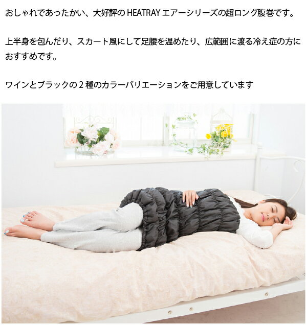 HEATRAY エアー「ボディチューブ」商品名HEATRAY エアー「ボディチューブ」カラーワイン、ブラックサイズ約40×60×5cm重量約160g材質表地/ポリエステル95%・ポリウレタン5%、裏側/ポリエステル100%中わた/ポリエステル100%(天然鉱石含有)生産国日本お手入れについてできるだけ手洗いでお願いします【代引きについて】こちらの商品は、代引きでの出荷は受け付けておりません。【送料について】北海道は送料を頂きます。※沖縄、離島は配送不可。