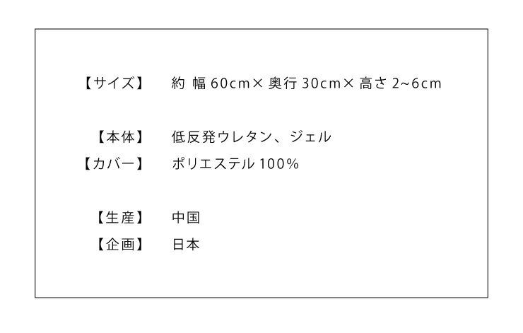 【サイズ】(約)幅60cm×奥行30cm×高さ2〜6cm【材質】本体:低反発ウレタン、ジェルカバー:ポリエステル100%生産:中国企画:日本【特長】腰枕、幅60cm、腰痛、ジェル枕、安眠、ゲル、体圧分散、足枕、低反発、ロー、ピロー、ジェルクッション、グッズ、ゲルクッション、低反発腰まくら、快眠、腰楽、腰痛グッズ、プレゼント、反り腰、安眠サポート、腰痛対策、疲労軽減、膝枕、抱き枕、足腰枕、妊婦、産前、産後、母の日ギフト、快眠グッズ、腰まくら、脚枕、むくみ、まくら、調整可、洗える、ウレタン、カバー付き、、背あて、快眠、安眠グッズ、椅子、クッション、枕、運転、テレワーク、おうち、姿勢、猫背、うつぶせ、背筋、平背、ボディケア、お昼寝、まくら、休憩、母の日、仰向け寝、横向き寝、、響、父の日、老人の日、新生活【送料について】北海道、沖縄、離島は送料を頂きます。高反発マットレスシリーズマットレストッパー(シングル)ごろ寝マットレス(60×180cm)高反発折りたたみマットレスシリーズ三つ折り10cm厚(SS/S/SD/D/Q/K)三つ折り4cm厚(シングル)三つ折り4cm厚用カバー単品(シングル)四つ折り ソファマットレス(シングル)四つ折り ソファマットレス(ダブル)ウレタンまくらシリーズ高反発/低反発ロングまくら(幅100cm)高反発ロングまくら(幅140cm)低反発まくら(幅60cm)低反発まくら 圧分散ワイド(幅75cm)低反発ロングまくら(幅140cm)低反発ロング抱きまくら(幅100cm)低反発ジェル腰枕高反発足まくら 2個セット