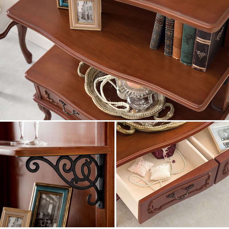 猫脚オープンラック 3段 アンティーク調 幅80cm マホガニー 収納 食器棚 引き出し ラック ディスプレイ シェルフ 猫脚 可愛い(代引不可)【送料無料】