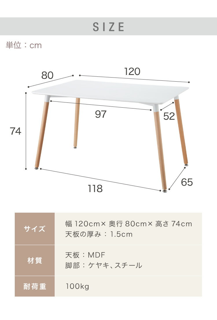 ■特長・天板と木脚の組み合わせがおしゃれなカフェテーブルです。・天板の耐荷重は100kgと、安心して使える設計です。・面取り加工がされているため、触り心地がなめらかです。・脚の先端にガタつきを抑えるアジャスター付き。■サイズ幅120cm×奥行80cm×高さ74cm■材質天板:MDF脚部:ケヤキ、スチール■重量15kg■耐荷重100kg※サイズには若干の差がございます。※商品の仕様は予告なく変更になる場合がございます。※商品の色味はモニターの機種や設定により実際の商品と異なる場合があります。予めご了承ください。※生産ロットにより、同じカラーでも多少の色差があることがございます。ご了承ください。【特長】テーブル、台、センターテーブル、カフェテーブル、ダイニングテーブル、リビングテーブル、ティーテーブル、テーブル、白系、ホワイト、おしゃれ、ナチュラル、作業台、作業デスク、パソコンデスク、1人暮らし、ひとり暮らし、シンプル、モダン、北欧、在宅ワーク、リモートワーク、ライティングデスク、スタイリッシュ、カフェ風【送料について】北海道、沖縄、離島は別途送料を頂きます。おすすめカフェテーブルカフェテーブル円形(60/80cm)一本足テーブル円形(60/80cm)一本足テーブル正方形(60/80cm)カフェテーブルシリーズカフェテーブル円形(60/80cm)一本足テーブル円形(60/80cm)一本足テーブル正方形(60/80cm)イームズテーブル円形(60cm)カフェテーブル正方形(60/80cm)カフェテーブル長方形(80×120cm)フラットクロスレッグ/十字脚 円形(60/80cm)