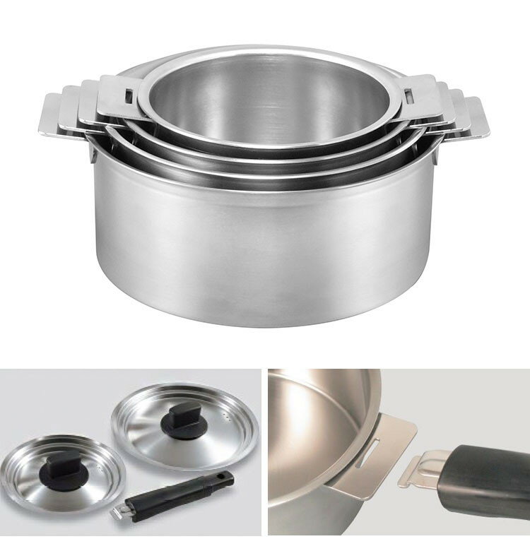 丸山技研 日本製 燕三条 ハンドル着脱式鍋4点セット 14cm・16cm・18cm・20cm SE-28 創燕 IH対応 ガス火OK 着脱式 鍋 ステンレス鍋 国産(代引不可)【送料無料】