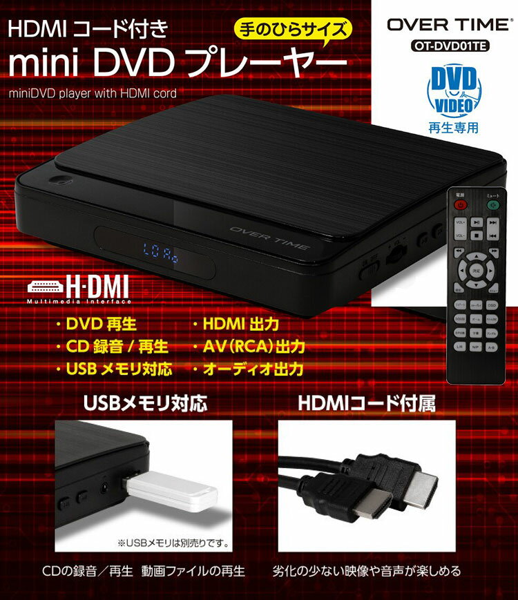 DVDプレーヤー HDMI端子付き DVD CDディスクプレイヤー CPRM対応 CD再生 CDリッピング録音機能 薄型設計 軽量 コンパクト リモコン OT-TVD01TE【送料無料】
