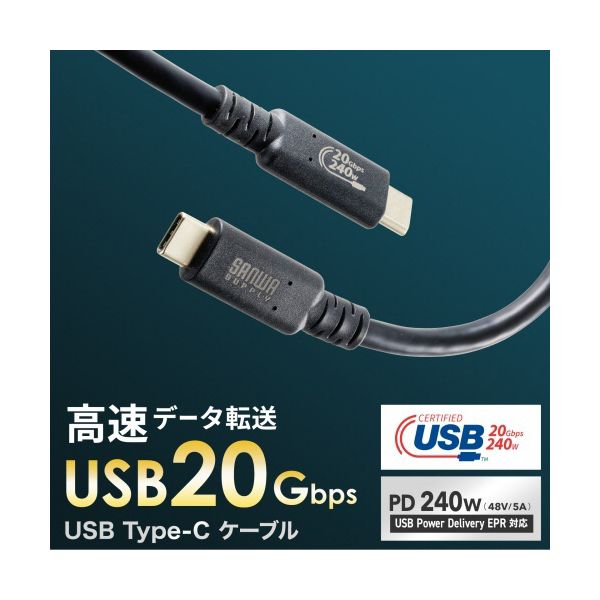 サンワサプライ USB20Gbps(USB4 Gen2×2)Type-Cケーブル 1m ブラック KU-20GCCPE10 1本