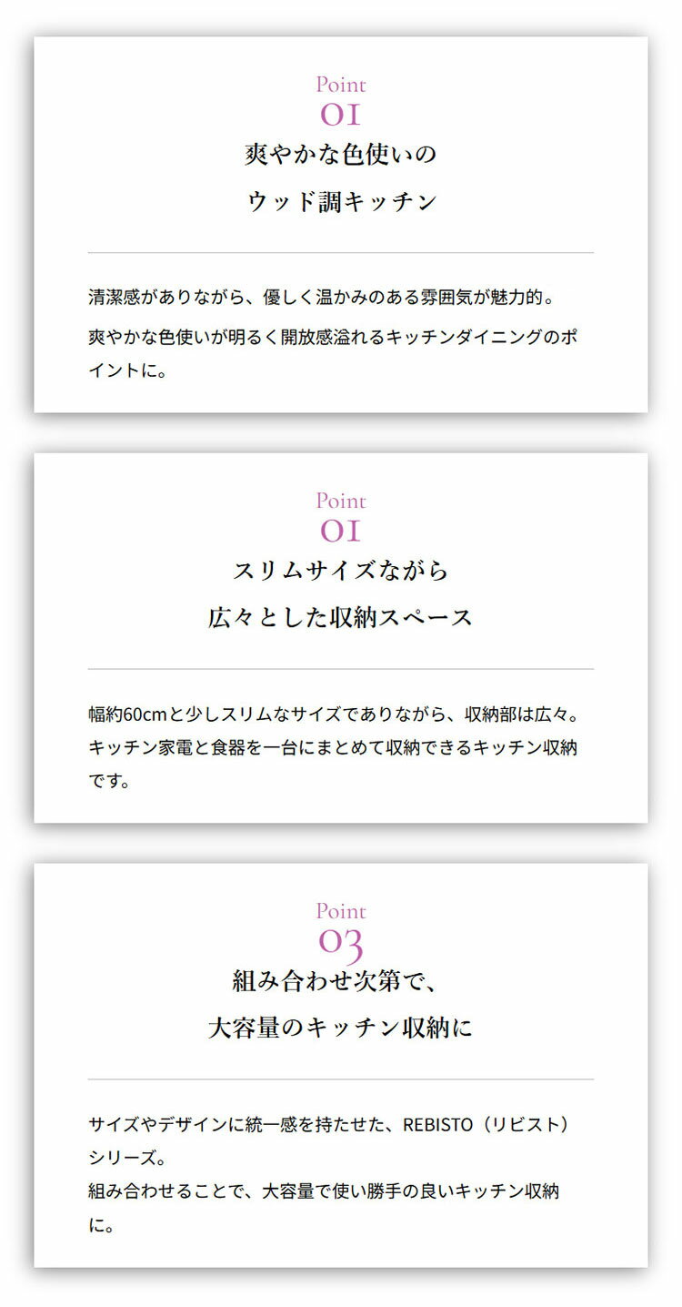 石目調ガラスの扉が美しい、2色付の取っ手が選べる幅58cmのレンジボード。■本体サイズ:W580×D405×H1800mm■商品重量:35kg■梱包サイズ:[2-1]W740×D445×H200mm[2-2]W1750×D445×H95mm■梱包重量:[2-1]18.5kg[2-2]20.5kg★耐荷重:[天板]20kg、[棚板・中板(上)]7kg、[中板(中)]20kg、[引出]5kg【送料について】北海道、沖縄、離島は送料を頂きます。REBISTO 収納シリーズスリムキャビネット/グレーナチュラルスリムキャビネット/ホワイト×グレーナチュラルキャビネット/グレーナチュラルキャビネット/ホワイト×グレーナチュラルキッチンカウンター/グレーナチュラルキッチンカウンター/ホワイト×グレーナチュラルレンジボード/グレーナチュラルレンジボード/ホワイト×グレーナチュラルカップボード/グレーナチュラルカップボード/ホワイト×グレーナチュラルレンジラック/グレーナチュラルレンジラック/ホワイト×グレーナチュラル