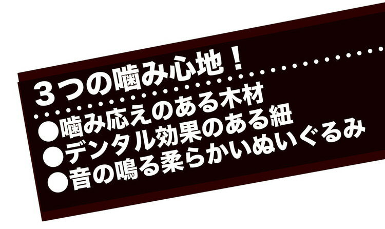 【取り寄せ品のご注意事項(ご注文前にご確認ください)】・本商品は原則注文後のキャンセルはお受けできません。・本商品と他商品で同梱注文をいただき、仮に他商品が完売等でご用意できない場合でも本商品は発送させていただきます。・本商品を複数(2点以上)注文いただき、完売等で注文数のご用意できない場合でもご用意できた数量は発送させていただきます。【商品説明】3つの噛み心地が楽しめるおもちゃ!3つの噛み心地のある玩具です。ピューピュー鳴る笛付き【3つの噛み心地】・噛み応えのある木材・デンタル効果のある紐・音の鳴るやわらかいぬいぐるみ・メーカー名株式会社 ペティオ ADD.MATE営業部・材質/素材表地:ポリエステル中綿:ポリエステルロープ:植物繊維(黄麻)、ポリエステル、コットン木部:天然木・原産国または製造地中国【送料について】北海道、沖縄、離島は送料を頂きます。