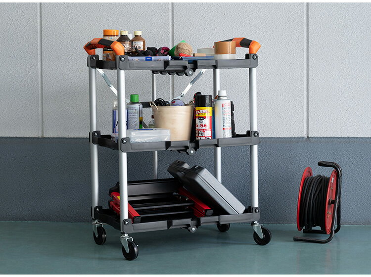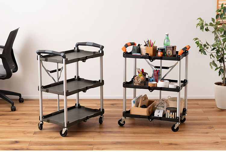 ワゴン 折りたたみ キャスター付き デスクワゴン アウトドア キッチンワゴン おしゃれ キャンプ バーベキュー 持ち運び 移動 配膳台 3段 三段 シンプル オレンジ 黒 ブラック カーキ(代引不可)【送料無料】