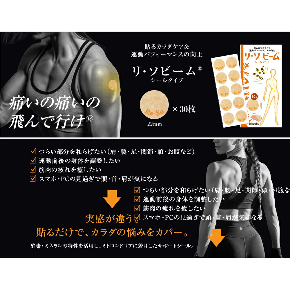 リ・ソビームシールタイプ 30枚入 【送料無料】Re・蘇公式 リソビーム マラソン ゴルフ サッカー スポーツケア スポーツ 運動 ランニング ジョギング 陸上 全身 首 肩 腕 膝 腰 ふくらはぎ 関節 筋肉 痛み マッサージ ツボ 健康 シール パッチ ボディーケア ボディーテープ