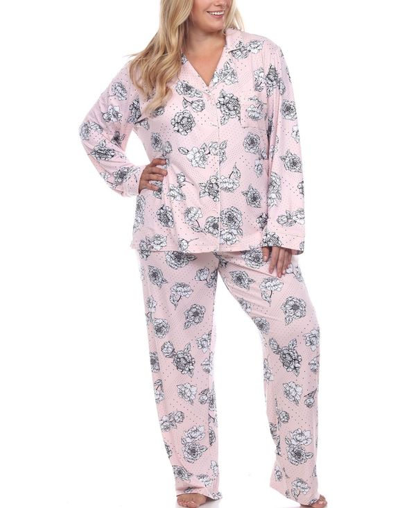 ホワイトマーク レディース アンダーウェア ナイトウェア フラワー柄 プラスサイズ フラワー White Mark Plus Size Long Sleeve Floral Pajama Set 2-Piece Rose